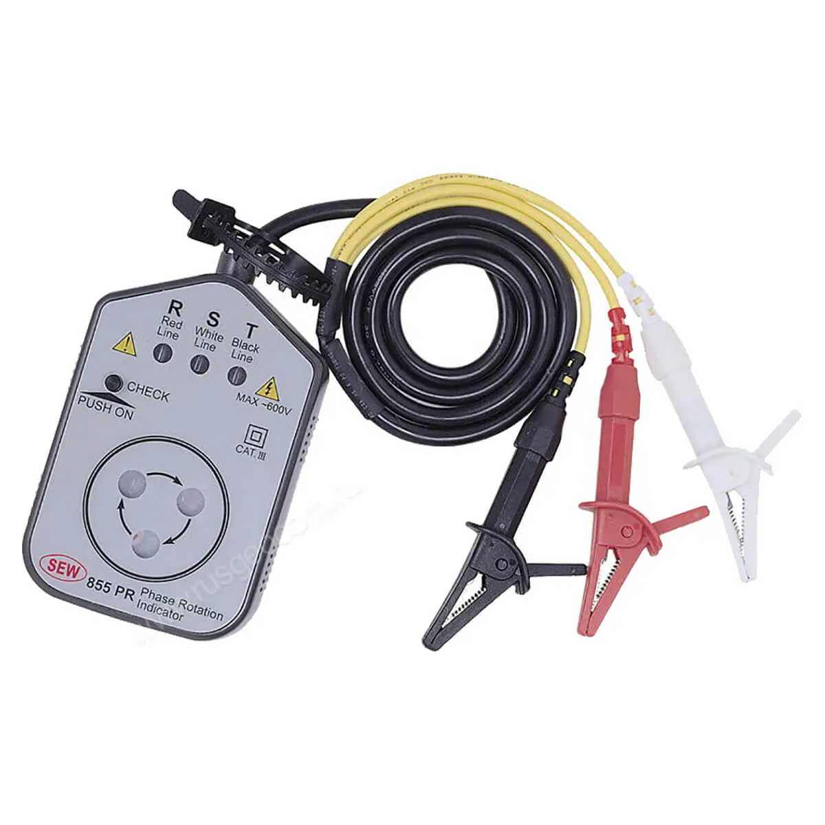 Прибор SEW 855 PR позволяет решить сразу несколько задач: устройство определяет наличие фаз в цепи электрического тока с напряжением 90-600В и частотой 50-60Гц, отображает порядок чередования фаз, а также имеет функцию обнаружения и оповещения пользователя об обрыве фазы.
