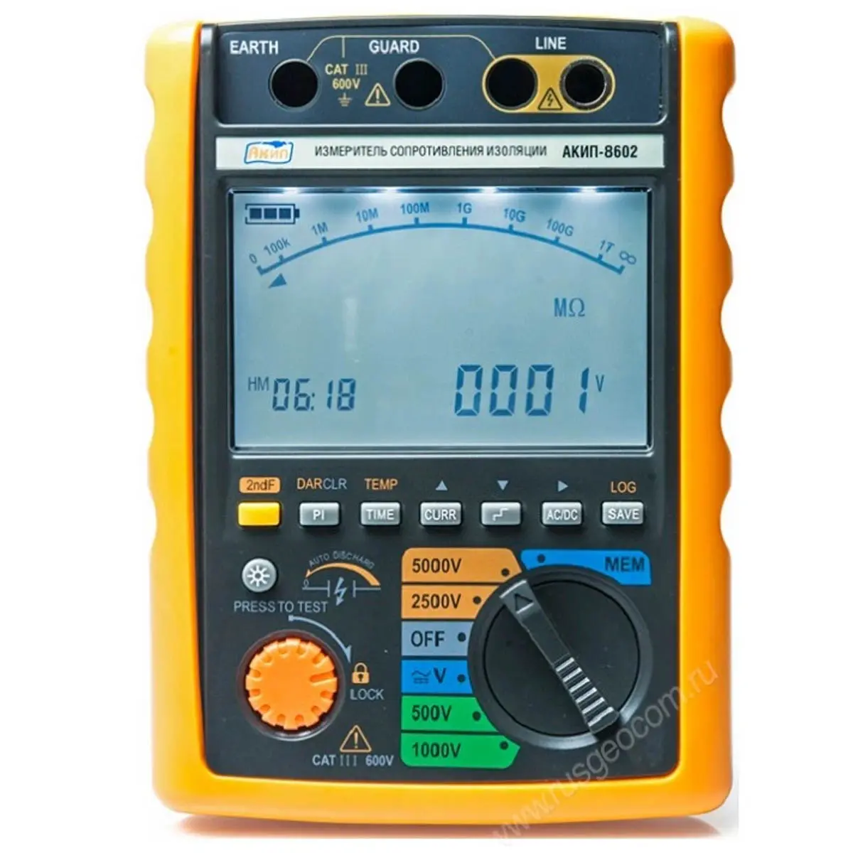 АКИП-8602 относится к категории профессиональных инструментов с широким набором измерительных возможностей. Основным назначением прибора является измерение сопротивления различных изоляционных систем, в том числе и тех, которые имеют индуктивные и емкостные составляющие. Для этих целей АКИП-8602 оснащен мощным преобразователем, способным формировать испытательное напряжение до 5кВ. Помимо этого мегаомметр может быть использован как вольтметр, работать в качестве детектора токов утечки и даже "превращаться" в термометр благодаря соответствующему датчику.