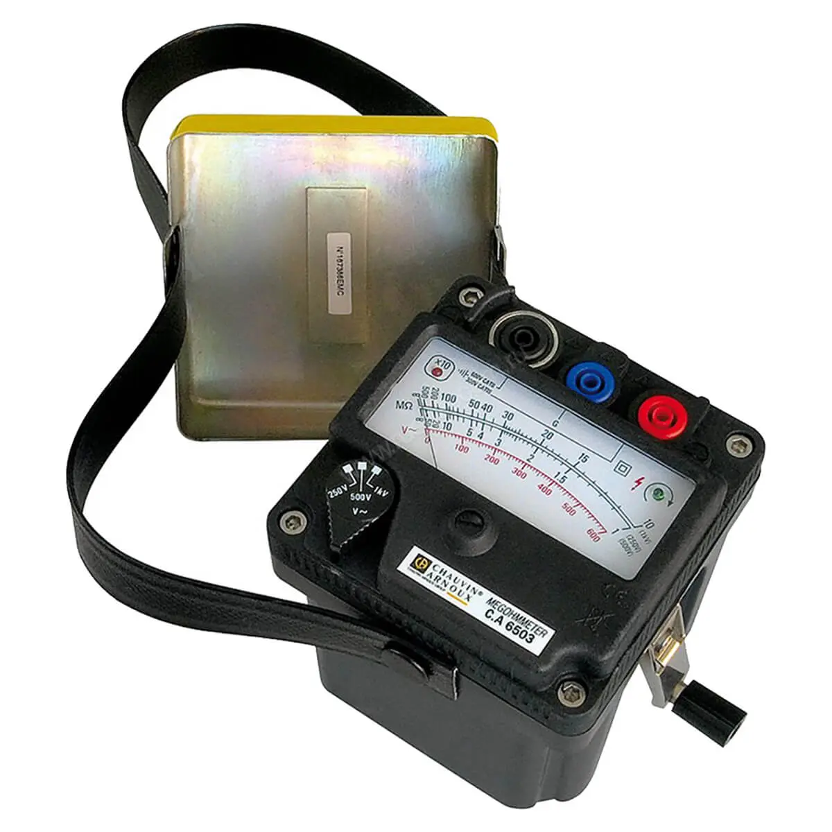 Аналоговая шкала. Для отображения значения сопротивления используется шкала с механической стрелкой. Благодаря этому для питания мегаомметра Chauvin Arnoux CA6503 не нужно использовать аккумулятор или батарейки.