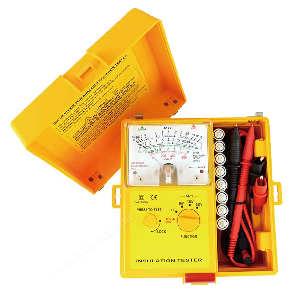 Питание мегаомметра автономно и осуществляется от 8-ми батареек АА. Корпус SEW 1801 IN выполнен из специальных материалов и имеет двойную изоляцию, поэтому прибор абсолютно безопасен для пользователя.