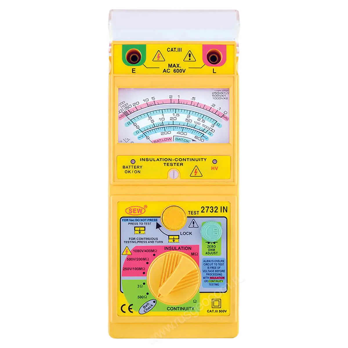 Все полученные данные автоматически удерживаются на экране SEW 2732 IN. Прибор имеет функцию автоматического отключения питания при простое. Питание мегомметра и осуществляется от комплекта из 6-ти батареек АА.