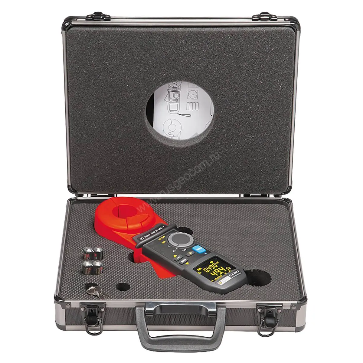 Измерители сопротивления заземляющих устройств Chauvin Arnoux CA6417 – токовые клещи, с помощью которых можно определить сопротивление петли заземления электрической проводки без отключения подачи электричества на объекте. Замеры производятся бесконтактным способом, для получения нужных значений достаточно обхватить электрический провод рабочими губками.