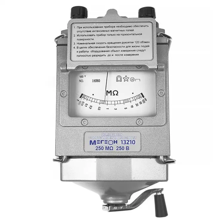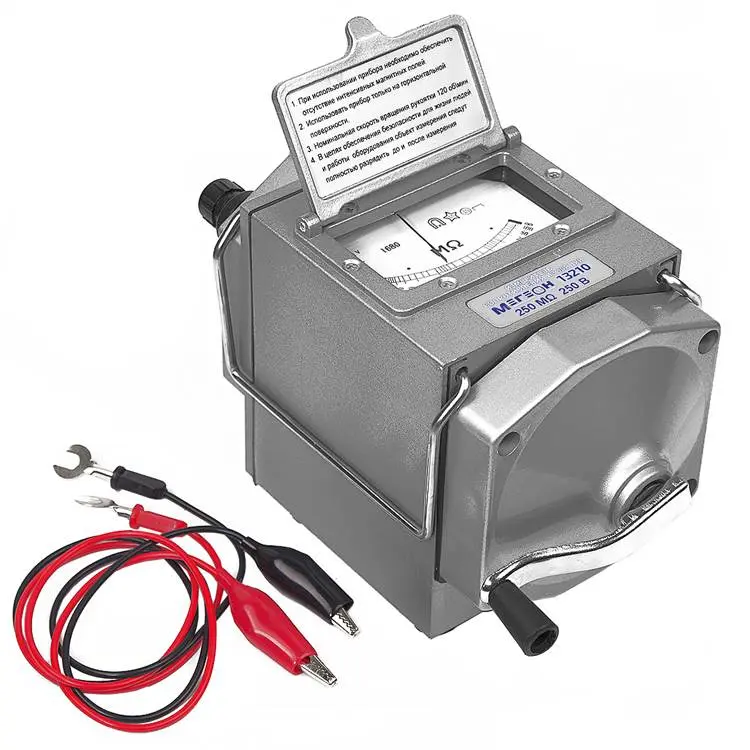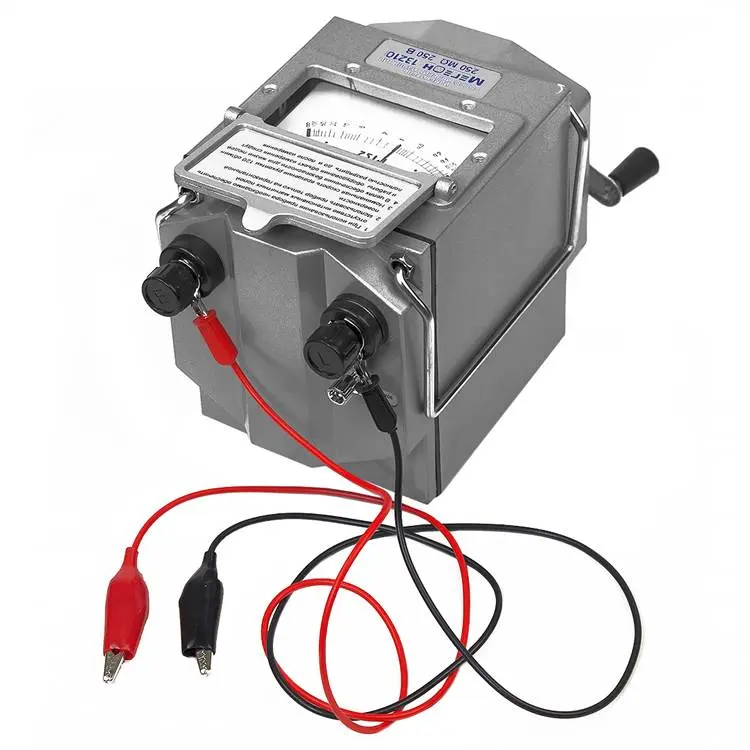 Чтобы начать измерение, достаточно подключить щупы с зажимами типа "крокодил" к исследуемому объекту и вращать генератор за рукоятку. Мегаомметр автоматически укажет измеренное значение сопротивления изоляции, что делает его удобным в использовании как для профессионалов, так и для любителей.