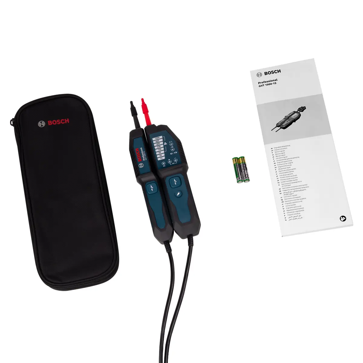 Одной из ключевых особенностей Bosch GVT 1000-15 является возможность обнаружения фазы даже при разряженных или отсутствующих батарейках. Прибор использует энергию самой измеряемой сети, что гарантирует работоспособность в критических ситуациях — например, при аварийных работах или в полевых условиях, где замена элементов питания невозможна.