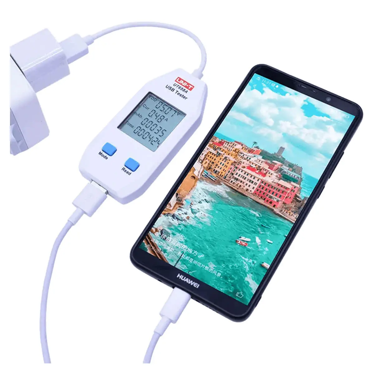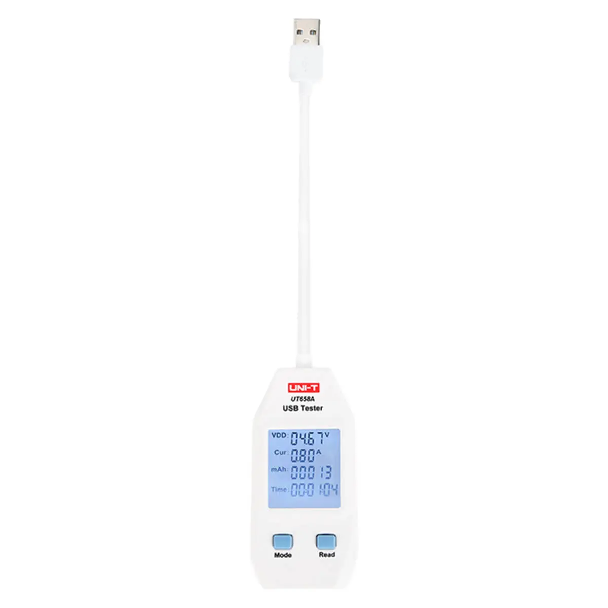 Тестер напряжения UNI-T UT658A служит для определения электрических параметров вторичных источников питания и устройств хранения энергии, а также преобразователей и потребителей, оснащенных USB портом. Соответствуя спецификации USB 2.0/3.0, для подключения к объектам контроля изделие оборудовано встроенным в корпус гнездом и штекером Type-A на гибком кабельном соединителе 10-сантиметровой длины. A-модификация относится к второму поколению своей серии и от базовой модели отличается конструкционным исполнением и расширенной функциональностью, обеспечивая возможность тестирования устройств с поддержкой протоколов быстрой зарядки не только QC 1.0, QC 2.0, но и QC 3.0.