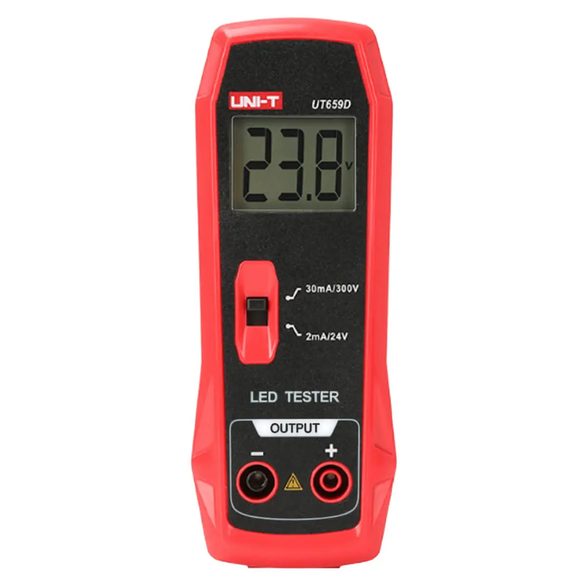 Тестер напряжения UNI-T UT659D является специализированным измерительным прибором компактного класса, который предназначен для оперативной проверки и диагностики светодиодной продукции: светильников, прожекторов, лент, ламп, подсветки ЖК-дисплеев и телевизоров, и т.д. По сравнению с A-модификацией своей серии, данный инструмент обладает расширенными измерительными возможностями, поддерживая работу в не только в высоковольтном режиме, 30 мА-300 В, но и в низковольтном – 2 мА-24 В. Благодаря этому можно тестировать как готовые изделия, включая несколько однотипных последовательно соединенных устройств, так и их компоненты и отдельные светодиоды.