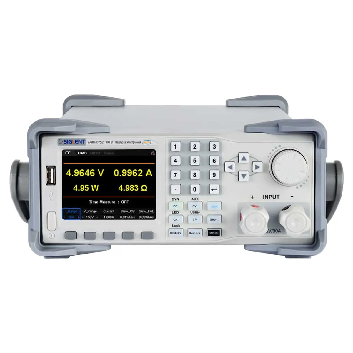 Нагрузка электронная АКИП-1375/2Е – высокопроизводительный программируемый прибор в переносном исполнении, внесенный в Госреестр СИ, позволяющий тестировать первичные источники постоянного тока, зарядное оборудование, блоки питания, преобразователи, автомобильные системы электроснабжения и прочую силовую электронику. Модификация "E" обладает такой же рабочей мощностью, что и базовая 300-ваттная модель, и аналогичными диапазонами измерения напряжения и силы тока, до 150 В и 30 А, отличаясь более доступной ценой за счет меньшего разрешения встроенного вольтметра и амперметра – 1 мВ и 1 мА соответственно.