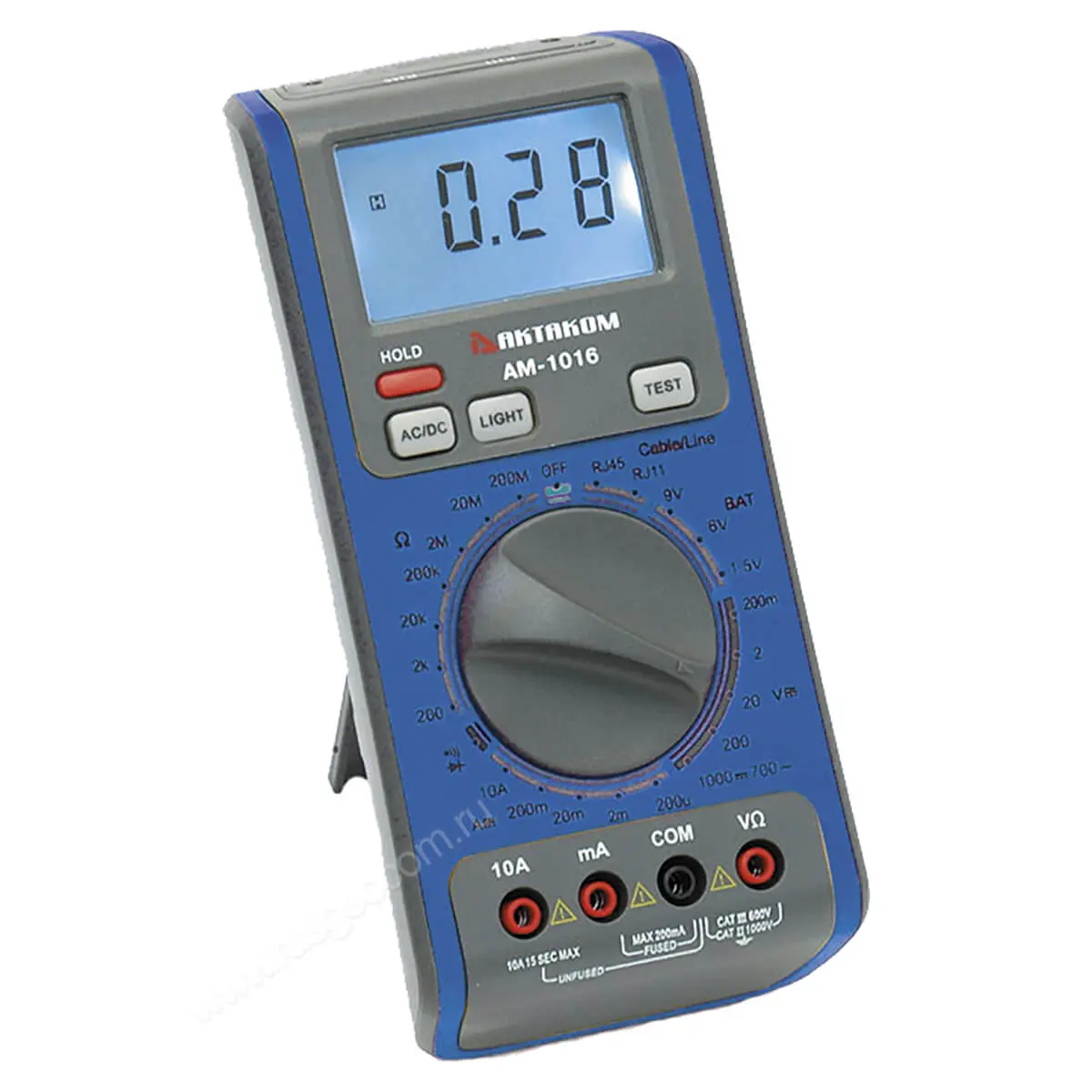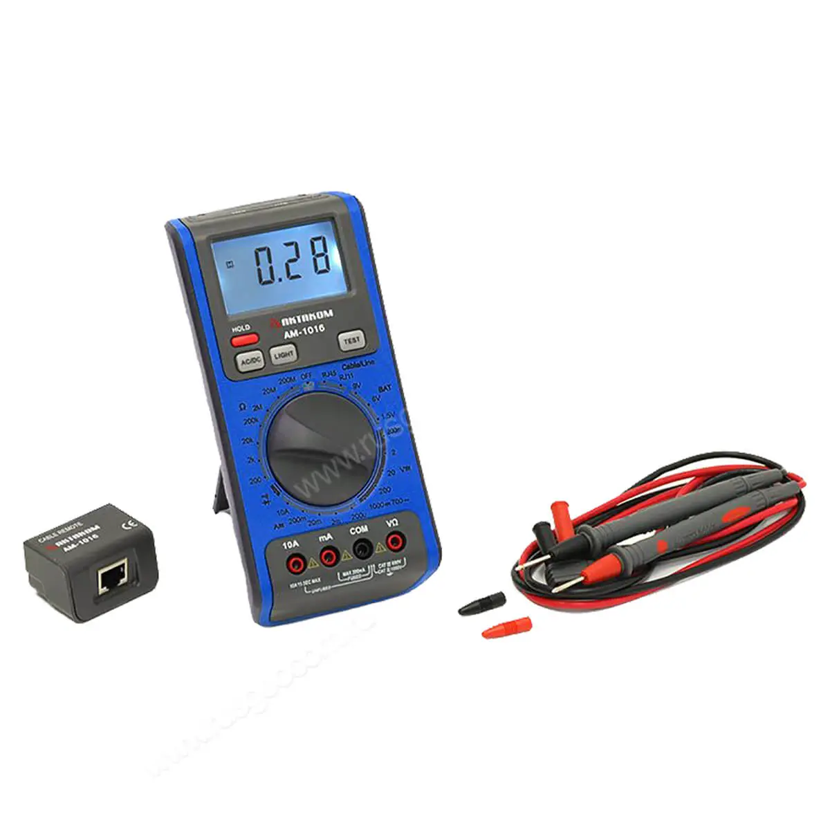Цифровой мультиметр Актаком АМ-1016 – универсальный электронный измерительный прибор, который может определять основные параметры работы электрических сетей. Помимо этого, с его помощью можно выполнять тестирование целостности телефонных линий и кабелей компьютерных сетей.