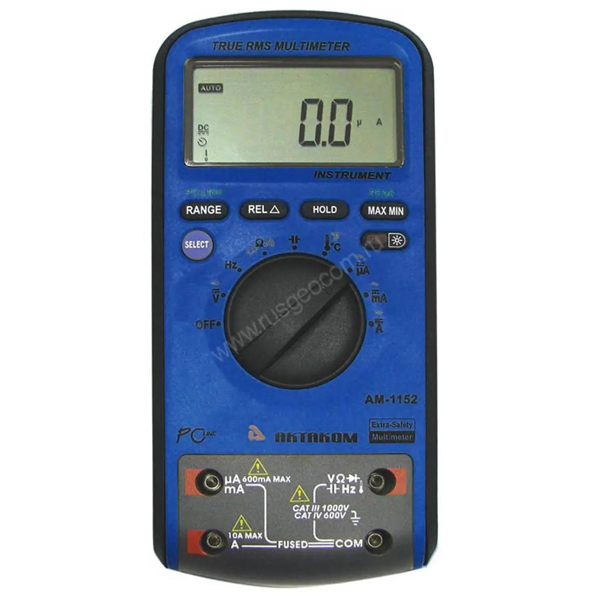 Актаком АМ-1152 может выводить на экран минимальные и максимальные значения измерений, помимо основных. Также, есть возможность измерять истинные среднеквадратичные значения (True RMS). При этом, предустановлена функция HOLD для удержания определенных параметров на дисплее.