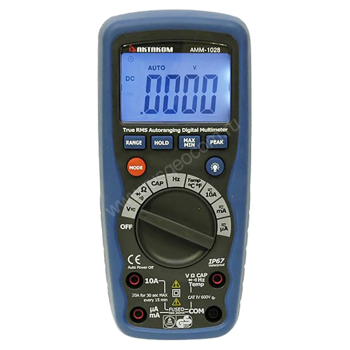 Особенностью мультиметра Актаком АММ-1028 является защищенный корпус, который соответствует стандарту IP67. Благодаря этому, устройство сохраняет работоспособность при прямом контакте с пылью, грязью и песком, не повреждается при попадании струй воды и кратковременном опускании в воду.