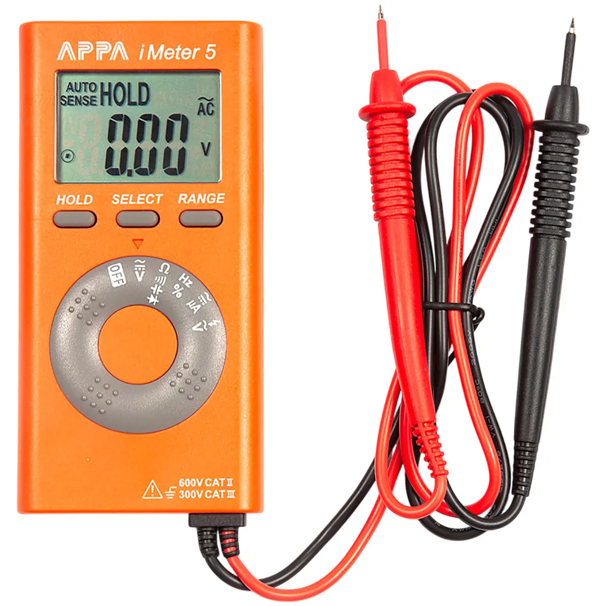 Мультиметр APPA iMeter 5 - это компактный прибор для электротехнических измерений, выполненный в форм-факторе “slim”. За счет сверхкомпактных размеров устройство подойдет как для любительского применения, так и для профессиональной оперативной диагностики.