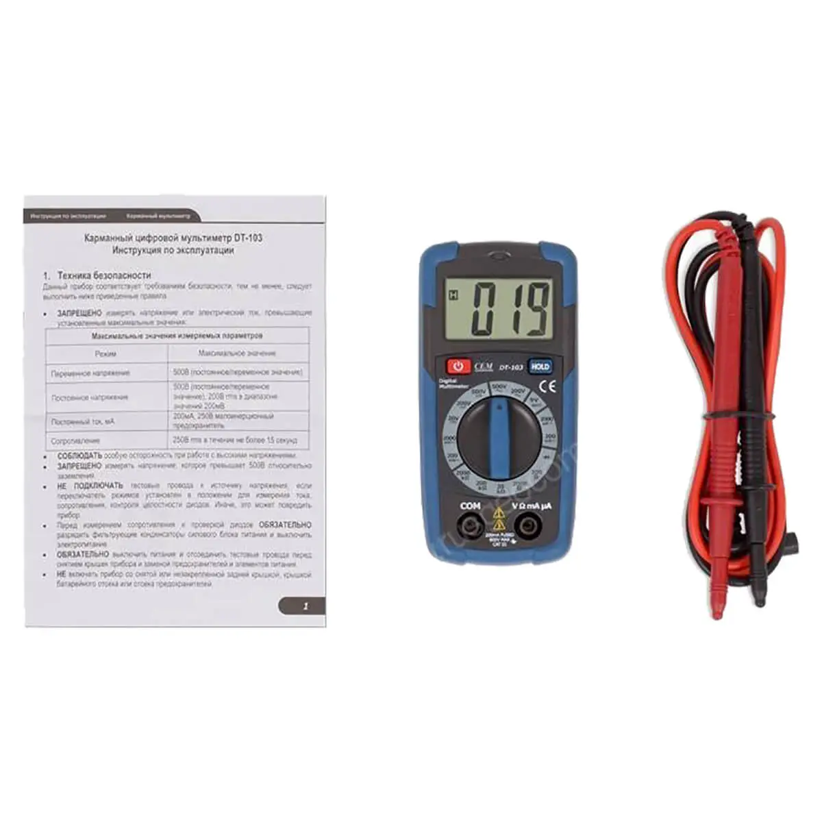 Малогабаритный мультиметр CEM DT-103 относится к приборам карманного класса, предназначенных для оперативных измерений. Благодаря портативной конструкции прибора вы можете всё время держать его при себе и использовать по мере необходимости. Доступная цена и широкий функционал делают его ценным приобретением и для решения бытовых задач.