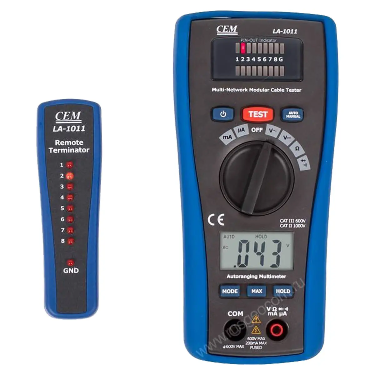 Тестер-мультиметр CEM LA-1011 — комбинированный кабельный измеритель, предназначенный для обслуживания компьютерных и телефонных сетей, а также для проверки и первичной диагностики электронной аппаратуры. С его помощью CEM LA-1011 вы можете выполнять широкодиапазонные измерения базовых электрических параметров, производить прозвонку цепей, диагностику полупроводниковых приборов, контролировать целостность линий связи, правильность подключения разъемов, надежность контактов, выявлять обрывы, замыкания, перехлесты и другие неполадки.