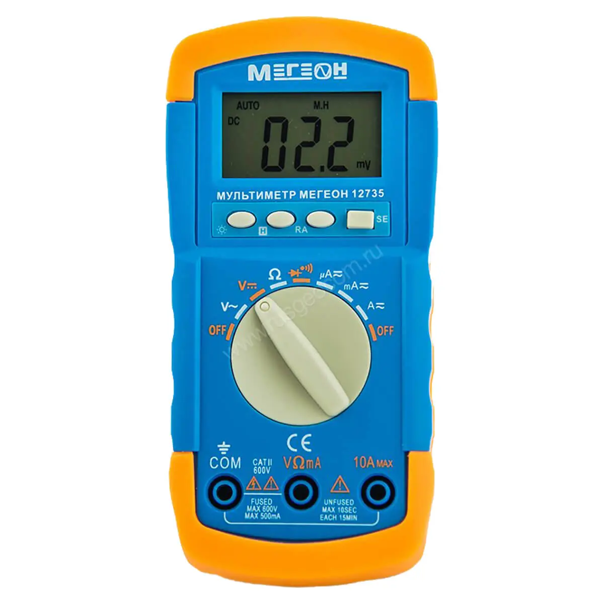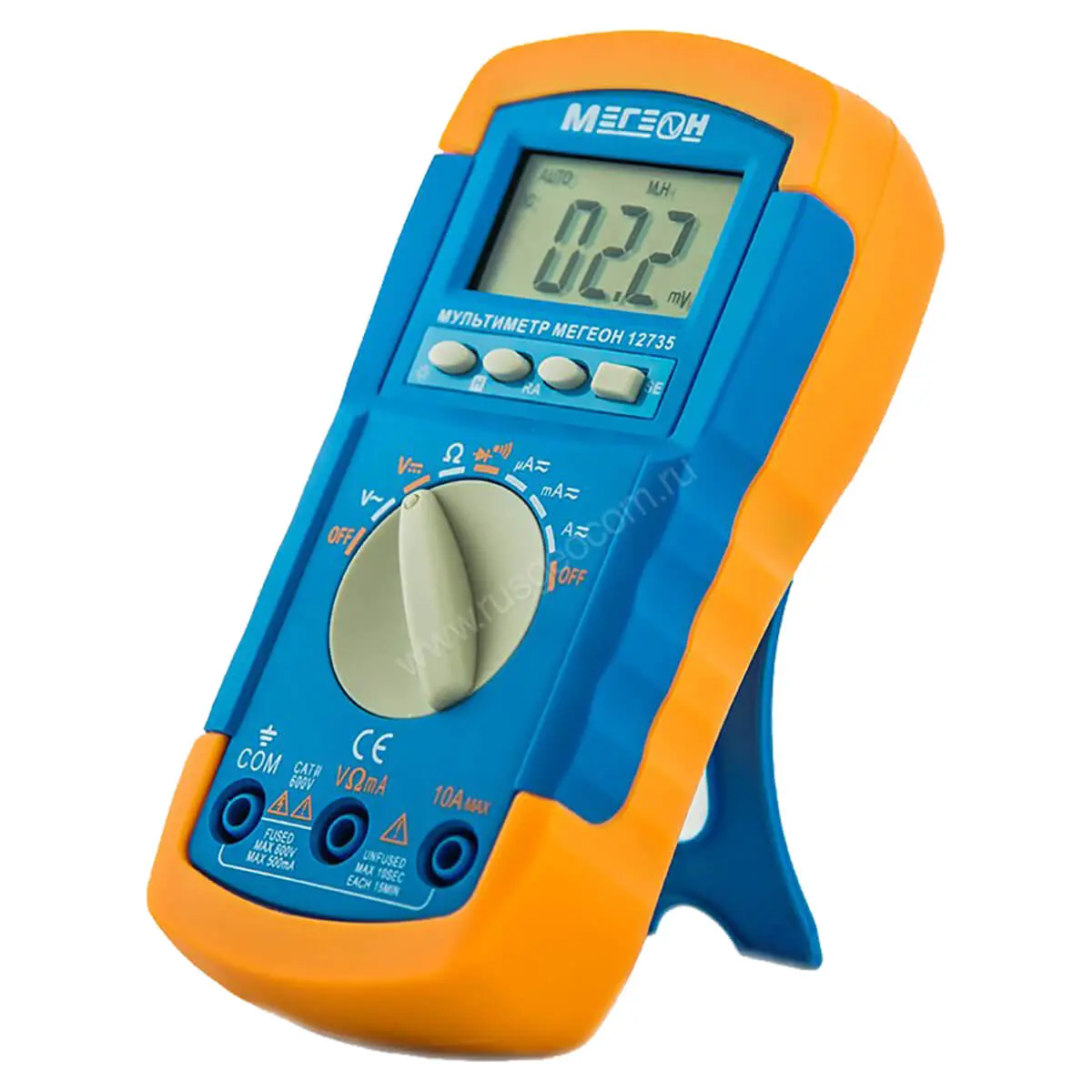 Недорогой цифровой мультиметр с автоматическим выбором диапазона МЕГЕОН 12735, это точный и надежной прибор, который будет радовать Вас своей долгой работой. В мультиметре реализована очень удобная функция автоматического выбора диапазона. Нет необходимости постоянно перещелкивать диапазоны, что ускоряет и упрощает процесс работы с прибором. Яркая подсветка дисплея позволяет использовать мультиметр в местах со слабым освещением. Компактный размер и малый вес цифрового мультитметра, позволяет его траспортировать и хранить без дополнительных сложностей. Мультиметр с автоматическим выбором диапазонавыполнен очень эргономично, прекрасно лежит в руке оператора. Прибор выполняет следующие виды измерений с автоматическим выбором диапазона: