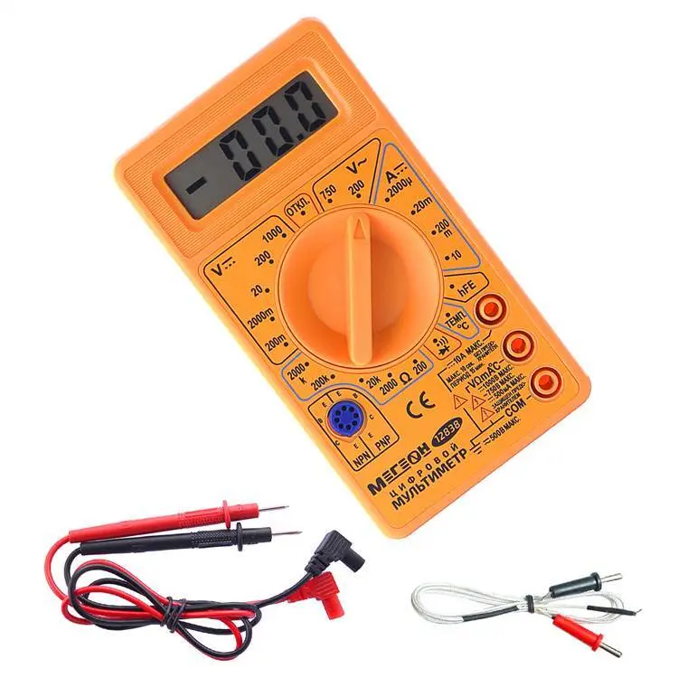Цифровой мультиметр МЕГЕОН 12838 стандартно реализует режимы измерения постоянного и переменного напряжения до 1000 и 750 В соответственно, а также способен определять силу переменного тока больших и малых номиналов, для чего задействуются разные измерительные контуры. Для решения диагностических задач предусмотрены режимы измерения сопротивления, проверки исправности полупроводниковых устройств и определения фактических параметров биполярных транзисторов перед их установкой в схему, для чего служит отдельный соответствующий слот. Оценка целостности электрических цепей может выполняться на слух, для чего прибор оснащается звуковой сигнализацией. Также с помощью данного изделия можно контролировать поверхностную температуру, используя подключаемый комплектный датчик-термопару, что повышает эффективность диагностики.