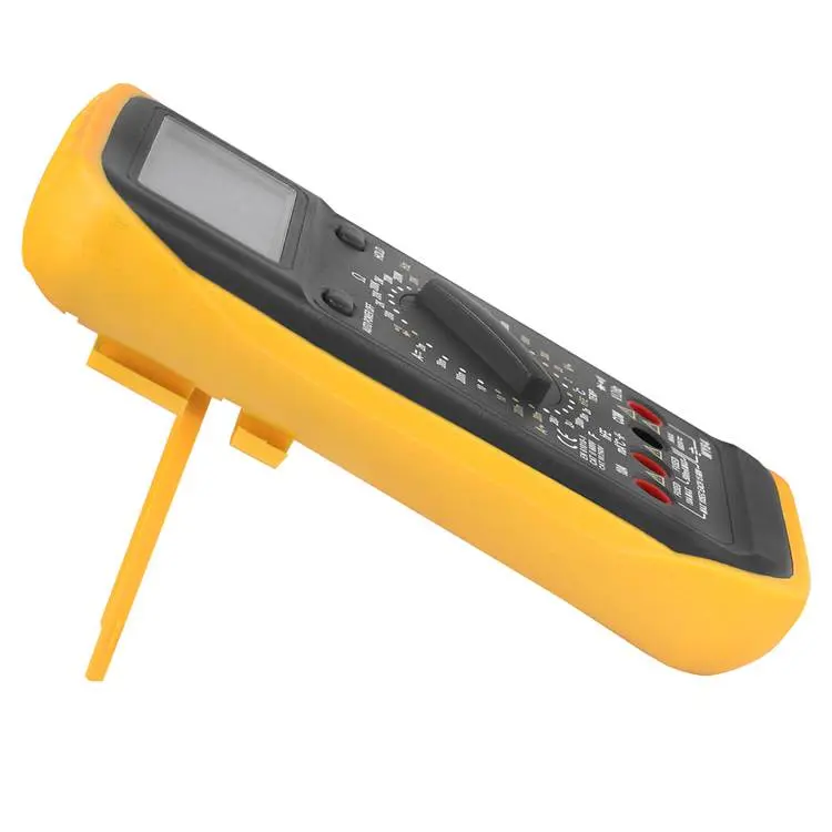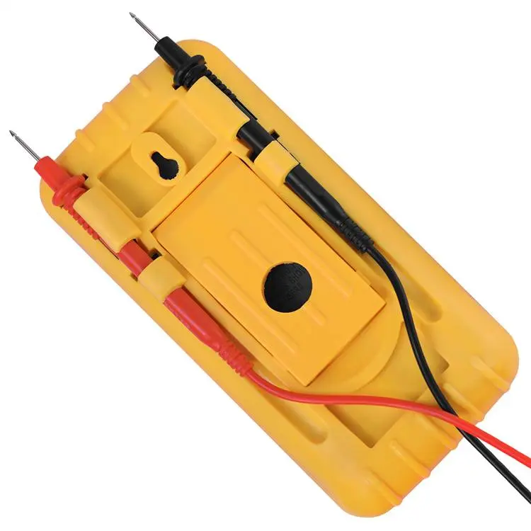 Для защиты от ударов и механических воздействий мультиметр МЕГЕОН MY64 комплектуется эластичным холдером. Устанавливать прибор на горизонтальных поверхностях под комфортным для считывания данных наклоном позволяет откидная ножка-упор, а для подвешивания предусмотрено соответствующее отверстие. Также холдер оборудован гнездами для фиксации комплектных щупов. Они упрощают переноску и хранение инструмента, позволяя обходиться без отдельного чехла. При выполнении замеров на весу, когда нет места для размещения мультиметра, один из наконечников измерительных проводов можно закрепить на приборе, удерживая его в руке.