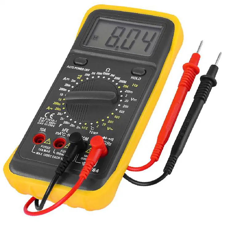 - Функция HOLD обеспечивает фиксацию текущих показаний на дисплее, упрощая считывание результатов измерений.