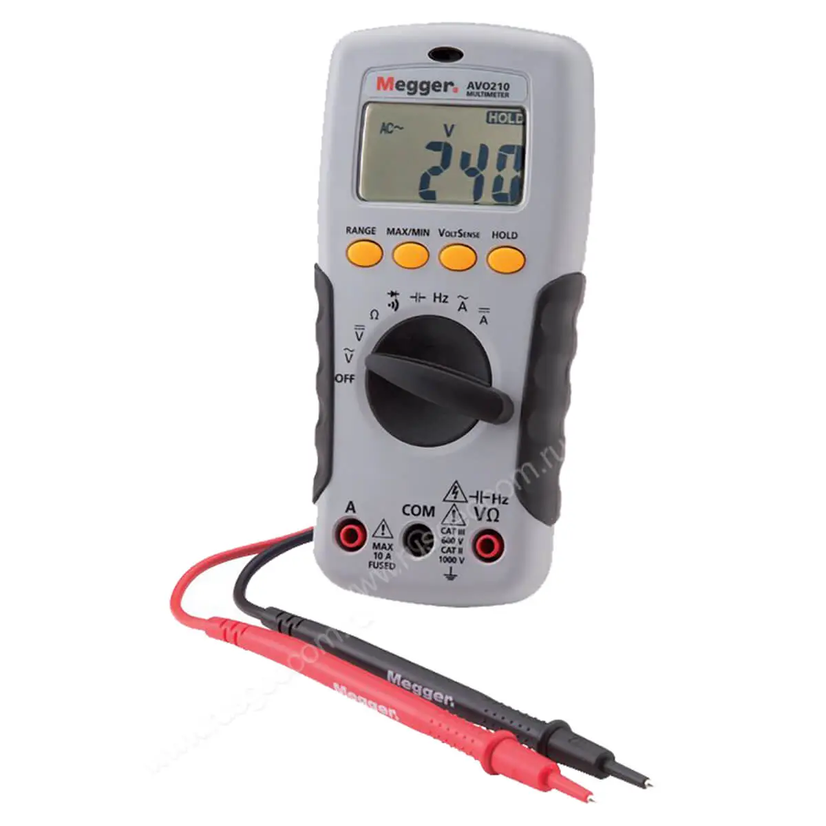 Мультиметр Megger AVO210 позволяет измерять напряжение и ток в цепях переменного и постоянного тока, а также сопротивление, частоту и емкость. Дисплей прибора имеет подсветку, что позволяет выполнять измерения в зонах со слабым освещением.