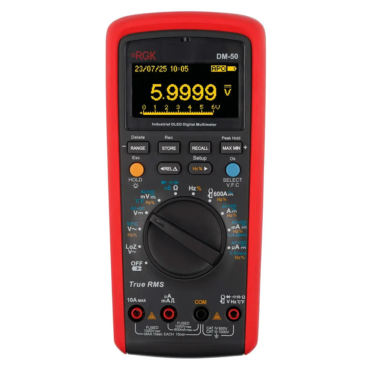 Мультиметр RGK DM-50 с поверкой - современный прибор для замеров электрических параметров, включая силу и напряжение постоянного и переменного тока. Широкий функционал помогает решать самые разные задачи как в быту, так и в профессиональной деятельности.