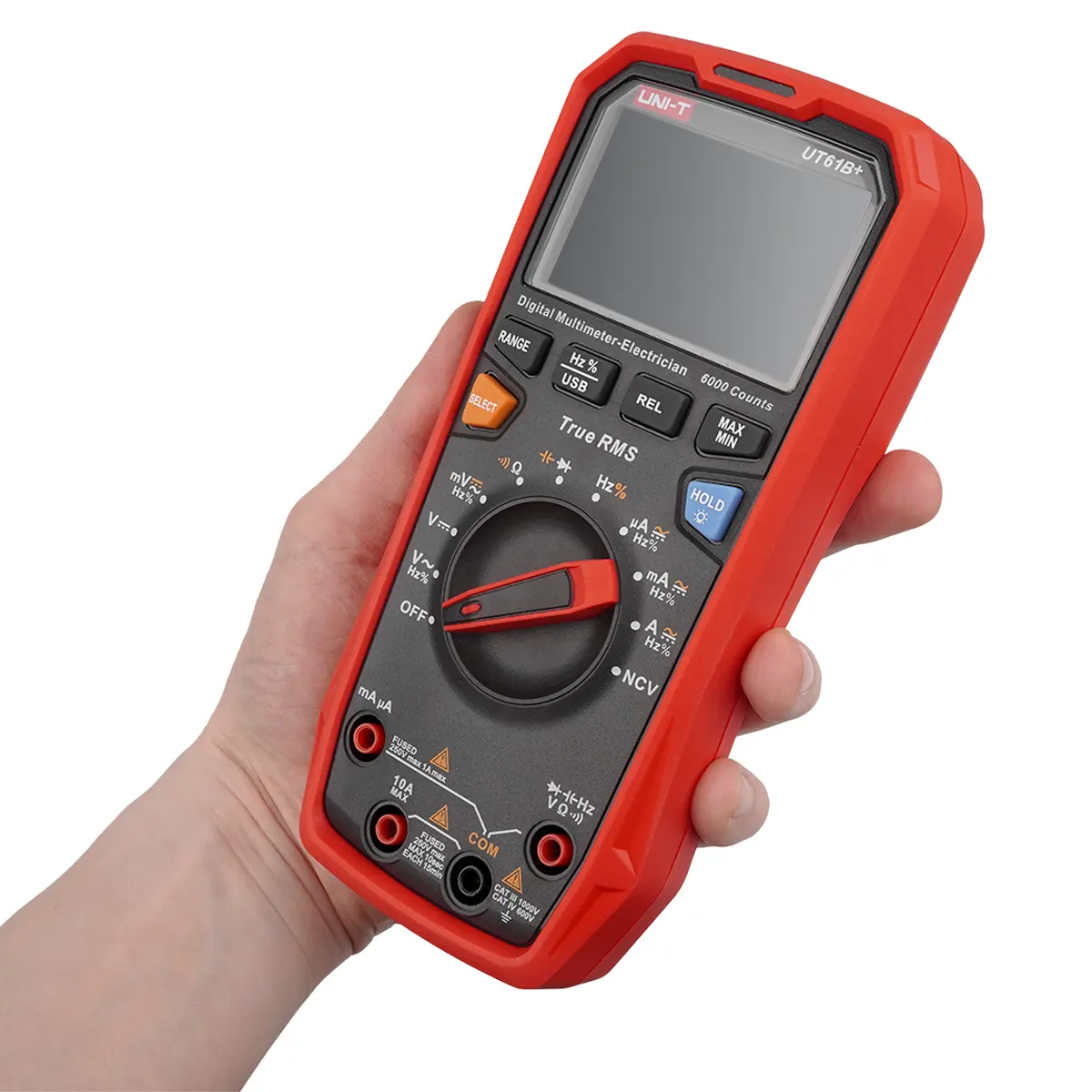 UNI-T UT61B+ оборудован большим дисплеем с подсветкой, что делает работу в условиях недостаточной освещенности более комфортной. Интуитивно понятный интерфейс и удобный захват обеспечивают легкость в использовании, даже для тех, кто не является профессионалом в области электроники.