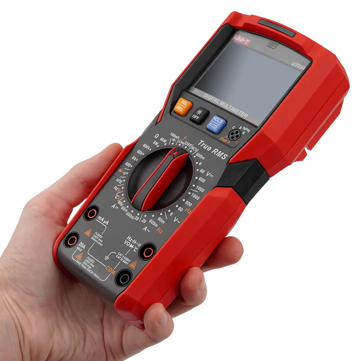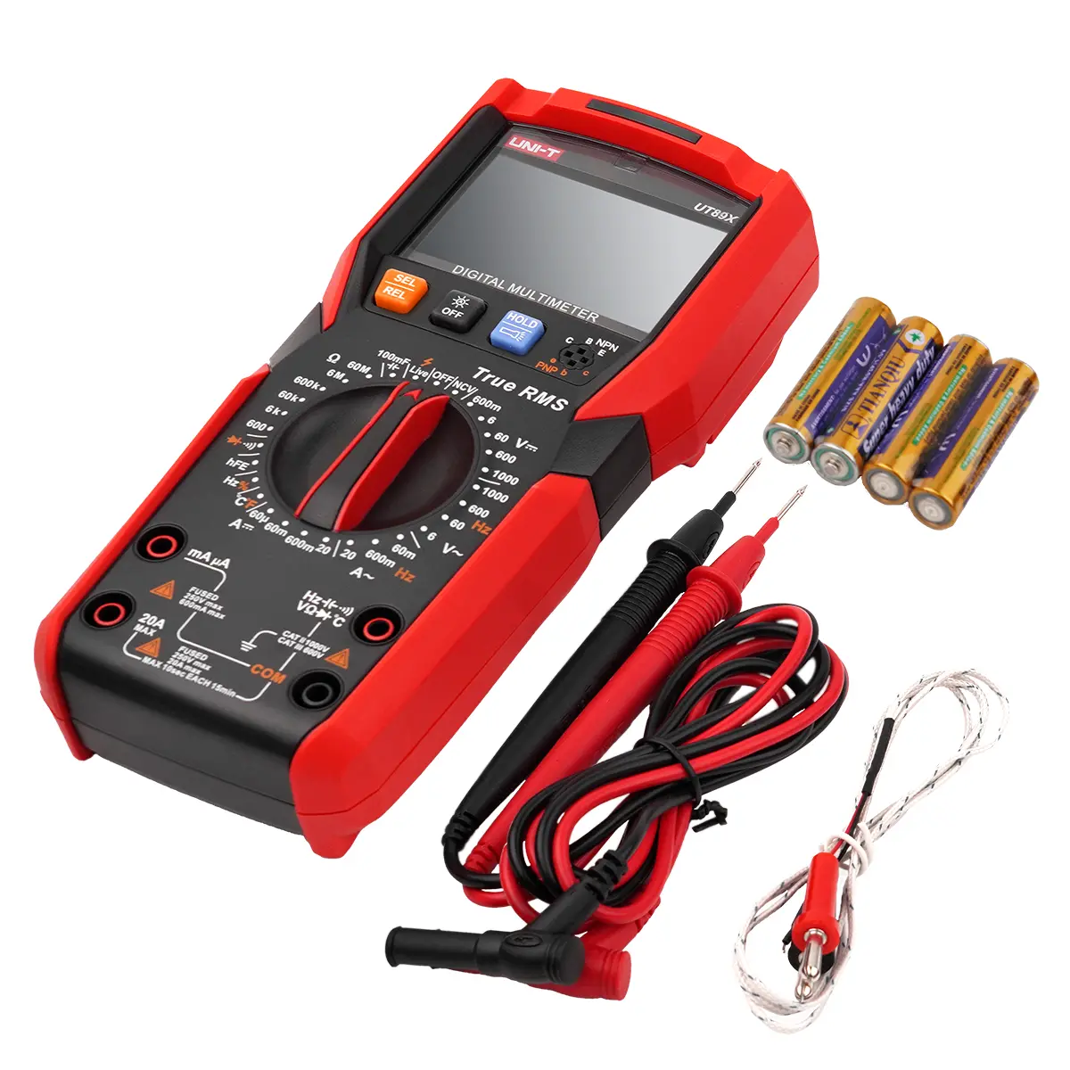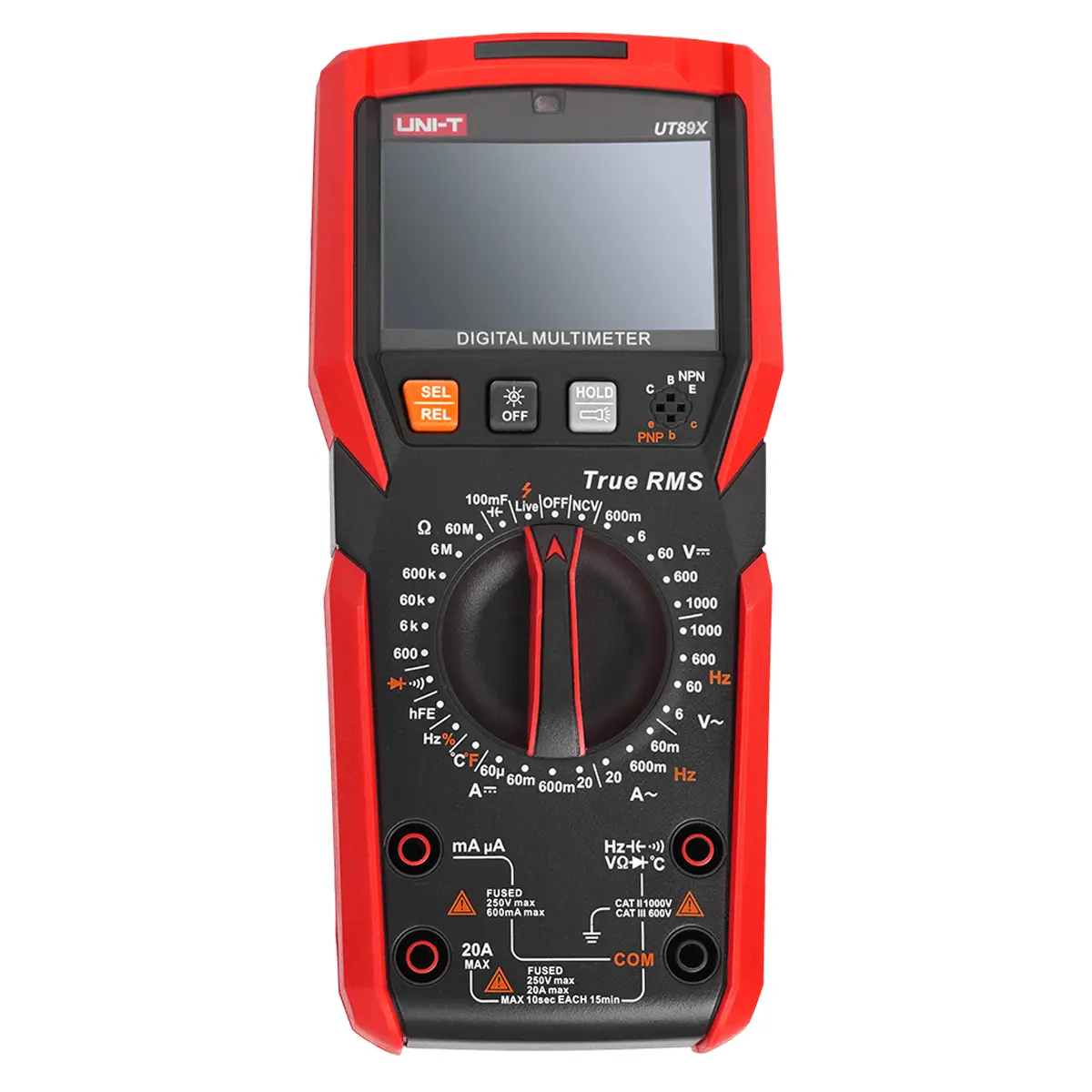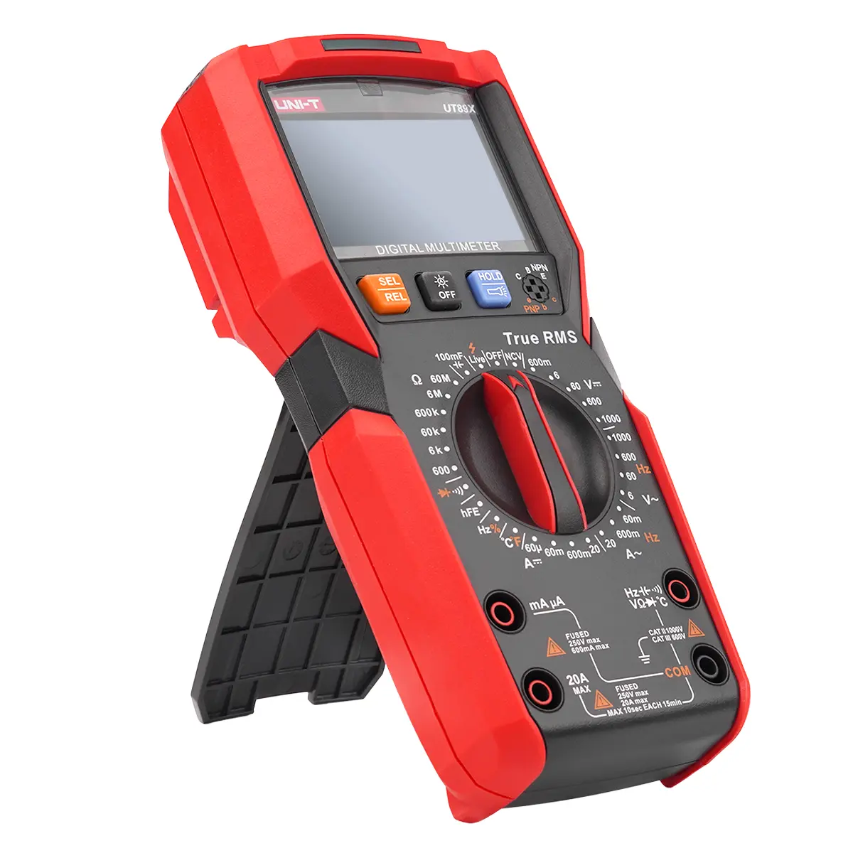 Мультиметр UNI-T UT89X — сочетает в себе множество функций, необходимых для различных измерений. Оснащенный интуитивно понятным дисплеем и отзывчивыми физическими кнопками, он обеспечивает легкость в использовании даже для новичков. Эргономичная ручка-регулятор позволяет комфортно удерживать прибор в руках, что особенно важно при длительных измерениях.