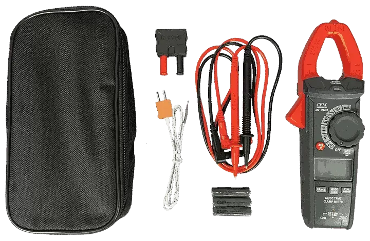 Токовые клещи CEM DT-9181 – комбинированный электроизмерительный инструмент промышленного класса с функцией True RMS. Прибор рассчитан на измерение силы тока номиналом до 400 А и оснащается удлиненными губками увеличенного размера, позволяющими производить замеры в проводниках толщиной до 30 мм без электрического подключения к ним. Также в изделии реализована возможность выполнения контактных электроизмерений с использованием подключаемых щупов и температуры с помощью внешнего датчика, благодаря чему при выполнении работ по диагностике и ремонту электрооборудования нет необходимости дополнительно задействовать мультиметр.