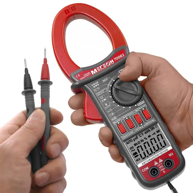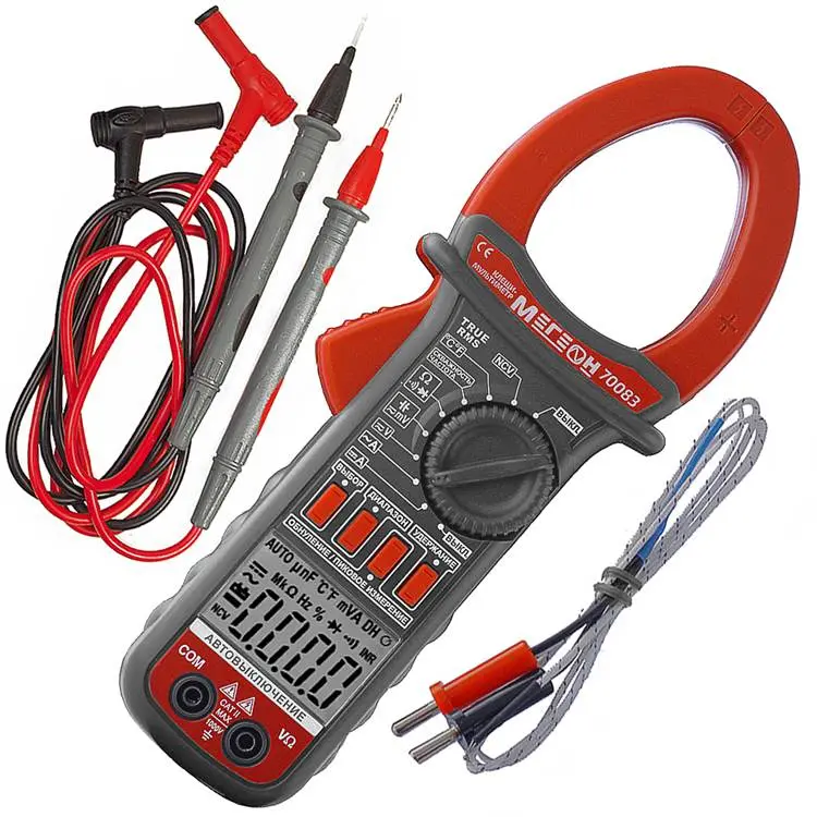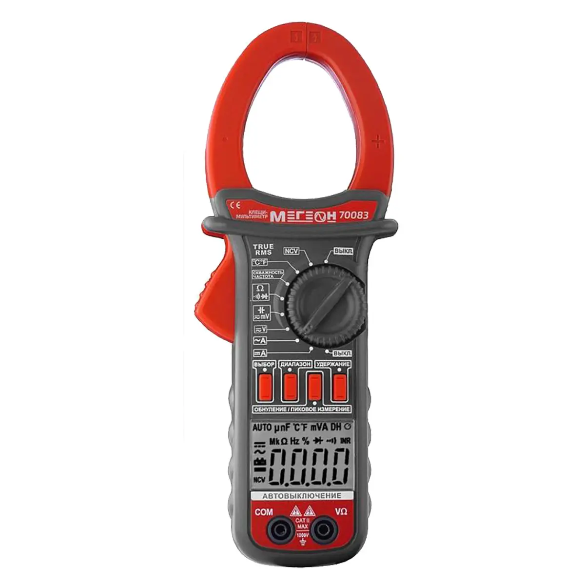 MEGEON 70083 сочетает в себе функции мультиметра и токовых клещей. Вы сможете измерять переменный и постоянный ток, переменное и постоянное напряжение, сопротивление, емкость, частоту, скважность и температуру. Более того, прибор оснащен функцией NCV (бесконтактный детектор напряжения), которая позволяет обнаруживать напряжение без прямого контакта с проводами. Также доступны функции INR (измерение импульсного напряжения и тока), проверка на обрыв и диодный тест.