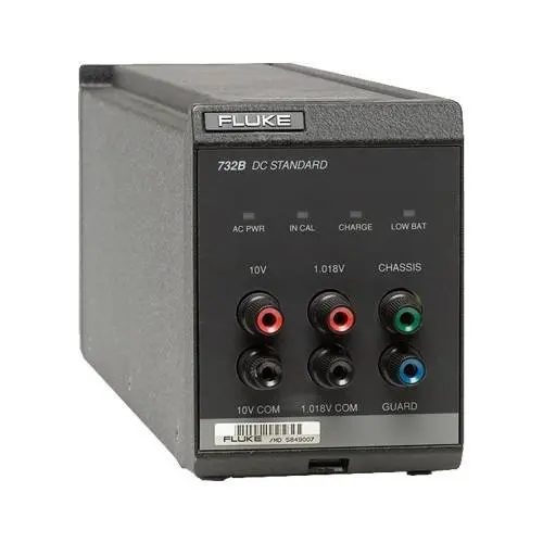 Fluke 732B представляет собой эталон постоянного напряжения с выходами 10 В и 1,018 В. 734A представляет собой вторичный эталон постоянного напряжения, состоящий из четырех устройств 732B, механически и электрически изолированных и размещенных в корпусе, который предназначен для монтажа в стойке.