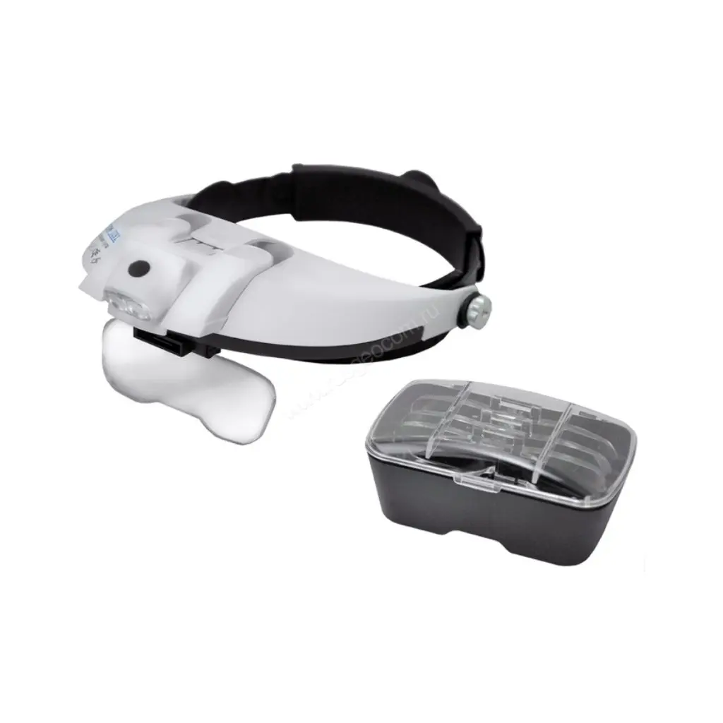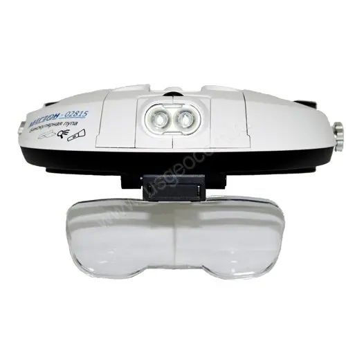 Бинокулярная лупа МЕГЕОН 02815 представляет собой приспособление с увеличительными линзами позволяющие одновременно смотреть в них двумя глазами. Данное приспособление подходит для чтения книг, пайки небольших компонентов, для осмотра ювелирных украшений и ремонта. Бинокулярная лупа одевается на голову, что позволяет освободить ваши руки. Имеется возможность быстрой регулировки, под размер головы. Так же присутствует LED – подсветка (фонарик) для облегчения использования лупы в местах с недостаточным освещением или его отсутствием. LED – подсветка имеет регулировку по наклону по вертикали. Бокс с подсветкой (фонарь) можно использовать и отдельно, отсоединив его от основной части корпуса. Для более сильного увеличения в комплекте идут 5 линз с различным увеличением, которые можно комбинировать 2 линзы сразу. Футляр для хранения увеличительных линз, входит в комплект поставки.