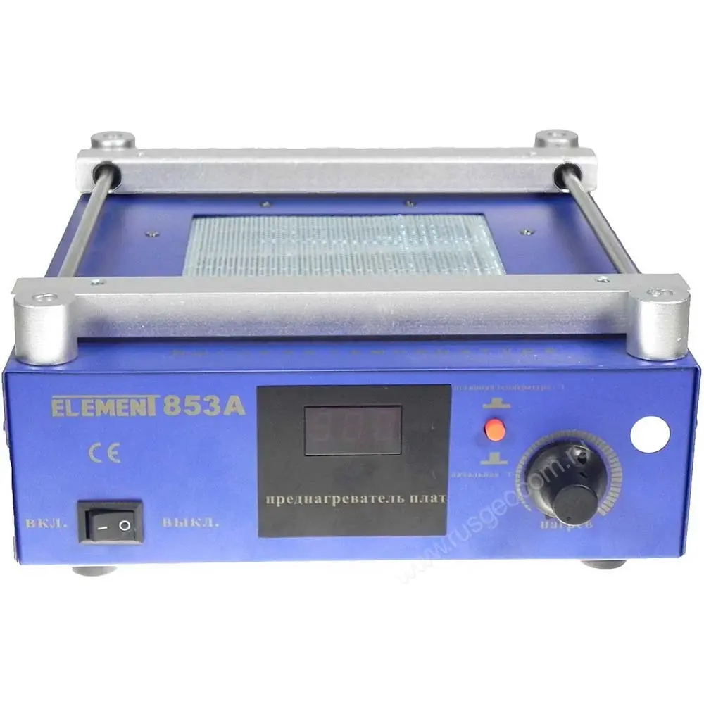 Преднагреватель платы ELEMENT 853А значительно упрощает ремонт смартфонов, планшетов, ноутбуков, ПК, компонентов этих устройств, промышленных плат и др. Прибор особенно удобен для реболлинга, демонтажа разъемов и чипов под компаундом, восстановления видеокарт.