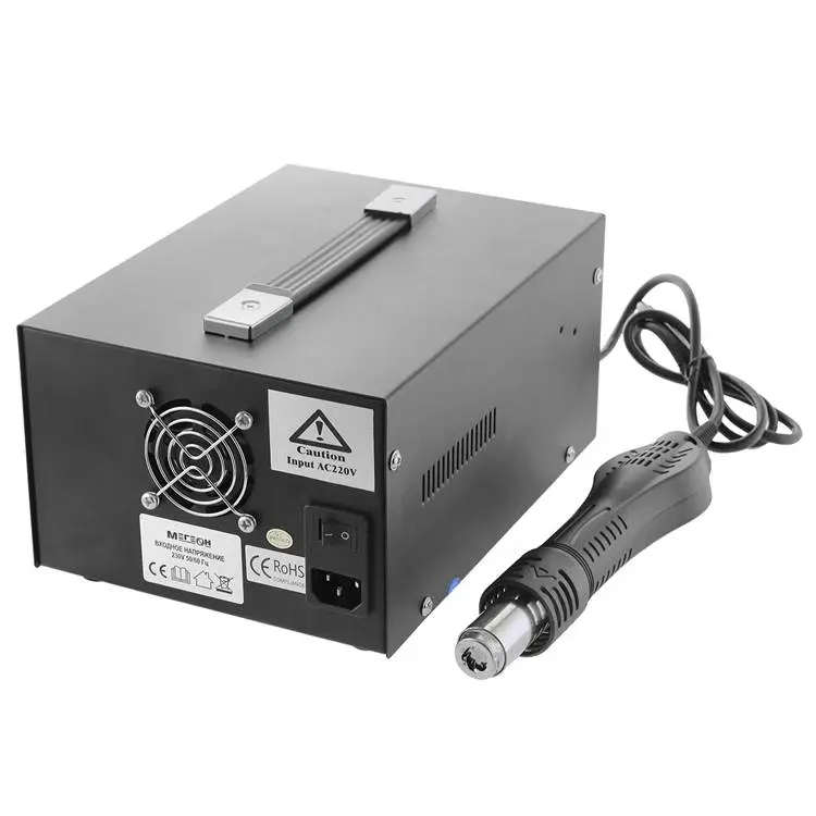 В комплект МЕГЕОН 00503 входят три сопла для термофена, что позволяет использовать его для различных задач — от сушки и разогрева до пайки. Это делает станцию ещё более универсальной и подходящей для широкого спектра работ.