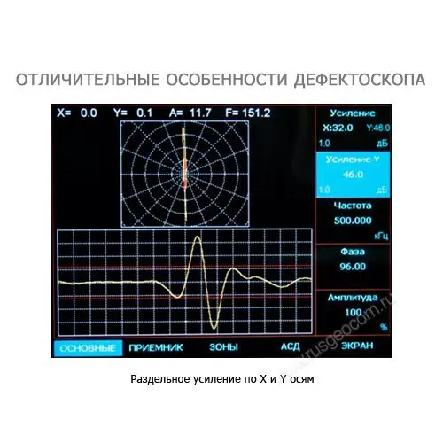 Прибор не только фиксирует дефекты, но и определяет их размеры и точное расположение. Это позволяет объективно оценивать их допустимость, в соответствии с действующими техническими условиями, нормирующими качество проверяемых изделий. Имеются специальные режимы для определения электропроводных свойств цветных металлов.