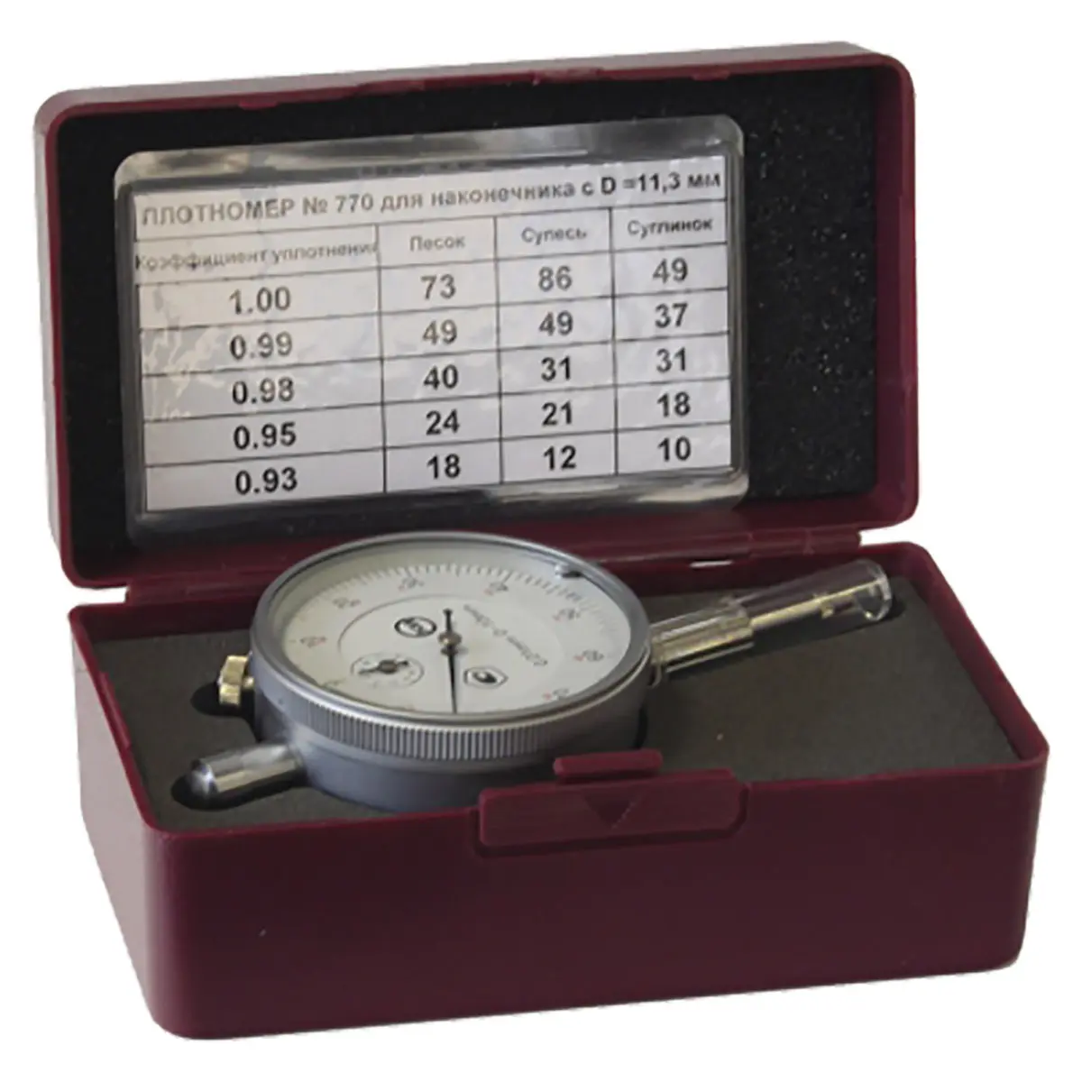 Прибор способен оценивать степень уплотнения песчаных и глинистых грунтов с содержанием включений размером более 10 мм не более 25%. Это делает его универсальным инструментом для различных типов грунтов.
