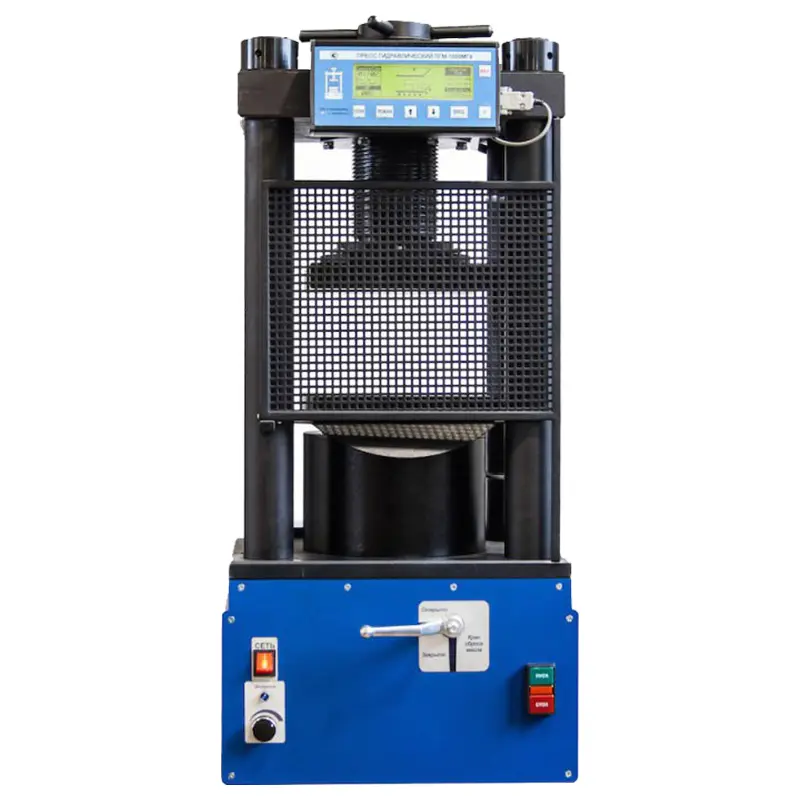 Пресс испытательный гидравлический малогабаритный ПГМ-1500МГ4 оснащен графическим дисплеем с подсветкой, что делает процесс работы с устройством максимально удобным. Ввод исходных данных, таких как вид материала, размеры образца и скорость нагружения, осуществляется в диалоговом режиме с пульта управления. Это позволяет оператору легко и быстро настроить технику под конкретные условия испытаний.