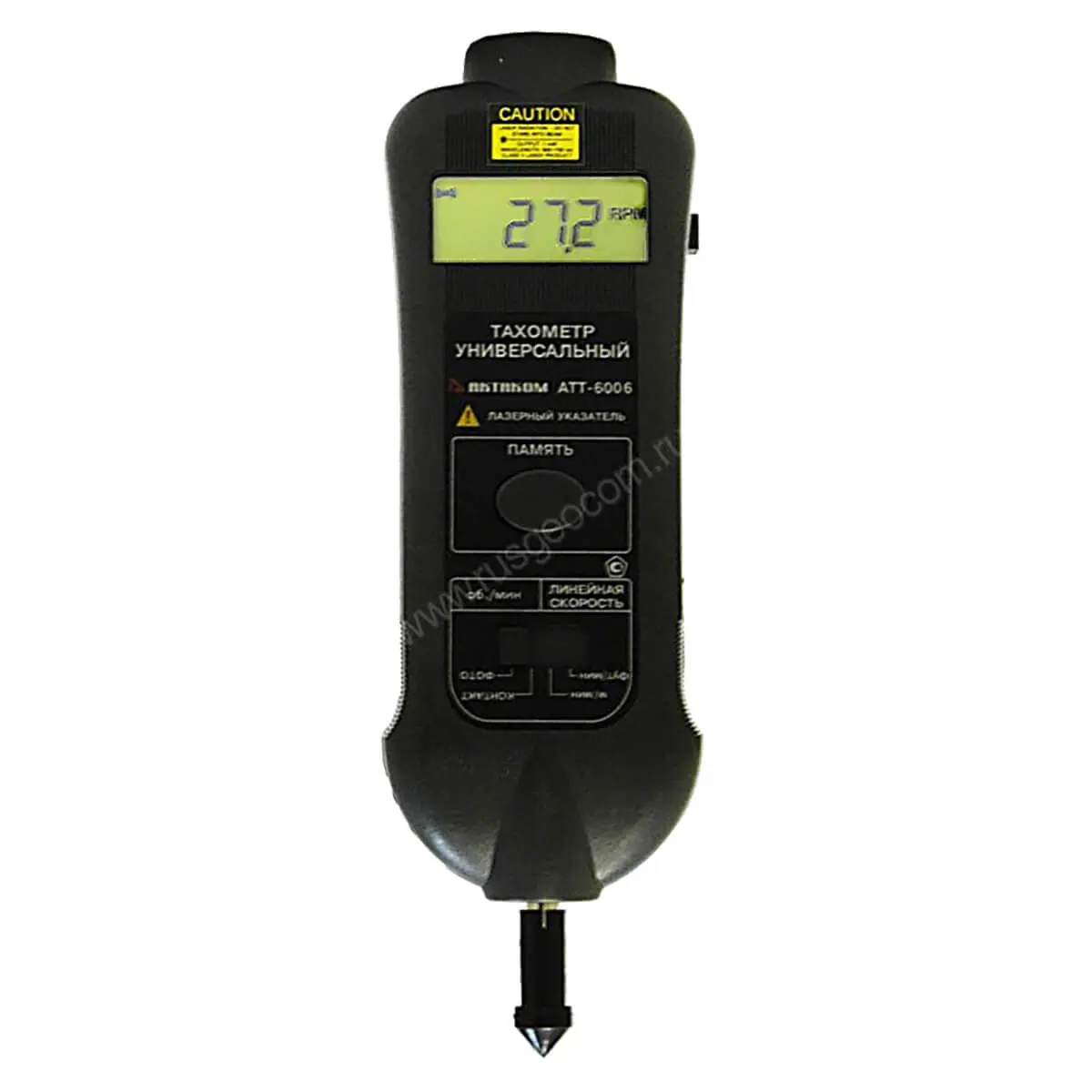Прибор является удачным сочетанием двух популярных приборов в одном корпусе. Цифровой контактный тахометр с возможностью измерения линейной скорости вращения и фототахометр с удобной системой лазерного прицеливания к метке-отражателю. В приборе имеется режим памяти максимального, минимального и последнего значения.