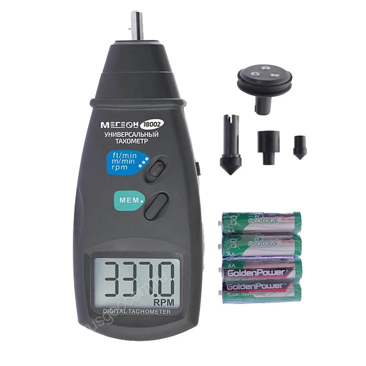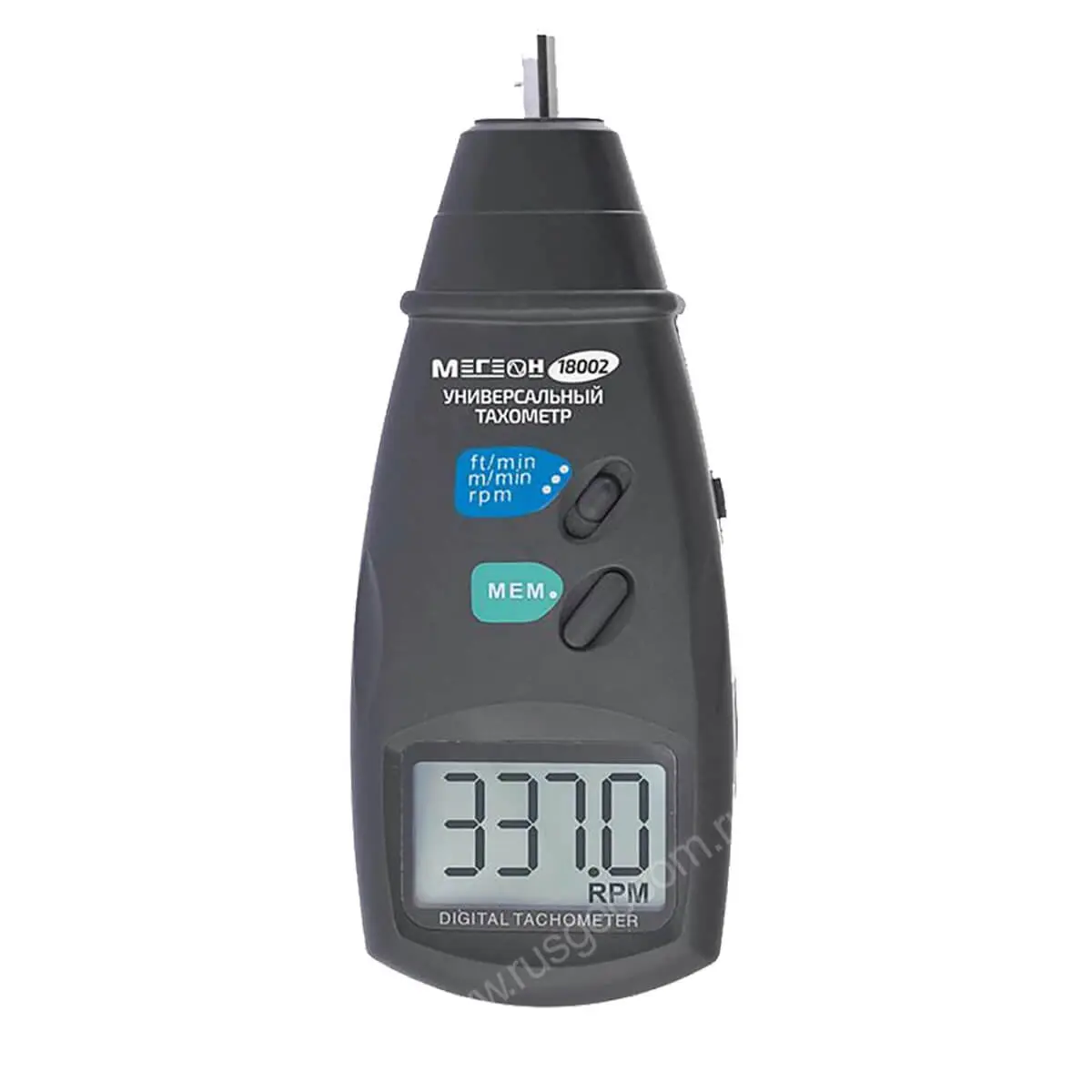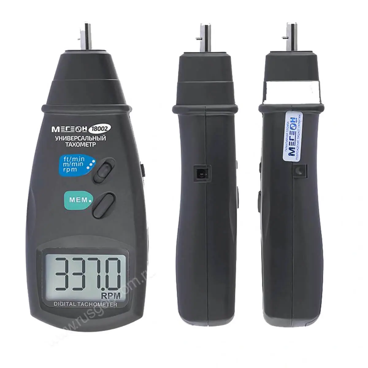 Портативный тахометр Мегеон 18002 — это высокоточная разработка от компании Мегеон. Данный измерительный прибор нашел широкое применение среди специалистов, чья профессиональная деятельность так или иначе связана с измерением скорости вращения различных объектов и предметов. Благодаря качественным комплектующим в аппаратной части и современному программному обеспечению, фототахометр Мегеон 18002 дает возможность измерять скорость вращения предметов в широком диапазоне — от 30 до 19999 оборотов в минуту (погрешность не превышает 0,05%) на расстоянии от 5 до 50 сантиметров.