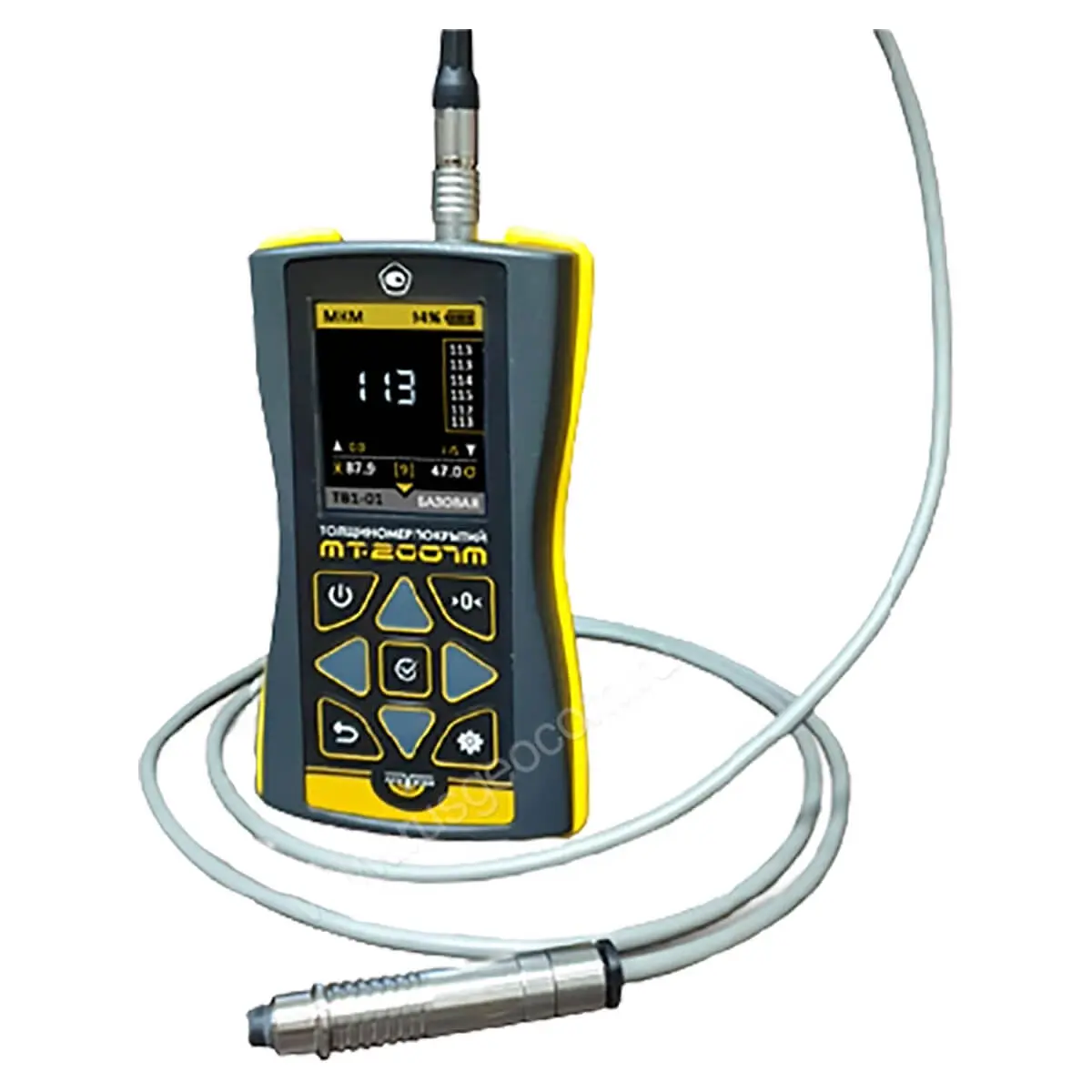 При покупке прибора можно выбрать один из двух доступных преобразователей. Рабочий диапазон модели ТМ2-01 составляет 5 - 2000 мкм, а датчика ТМ20-01 - от 50 до 20000 мкм, и до 30000 мкм при запросе соответствующей заводской калибровки. Оба преобразователя автоматически распознаются толщиномером при подключении.