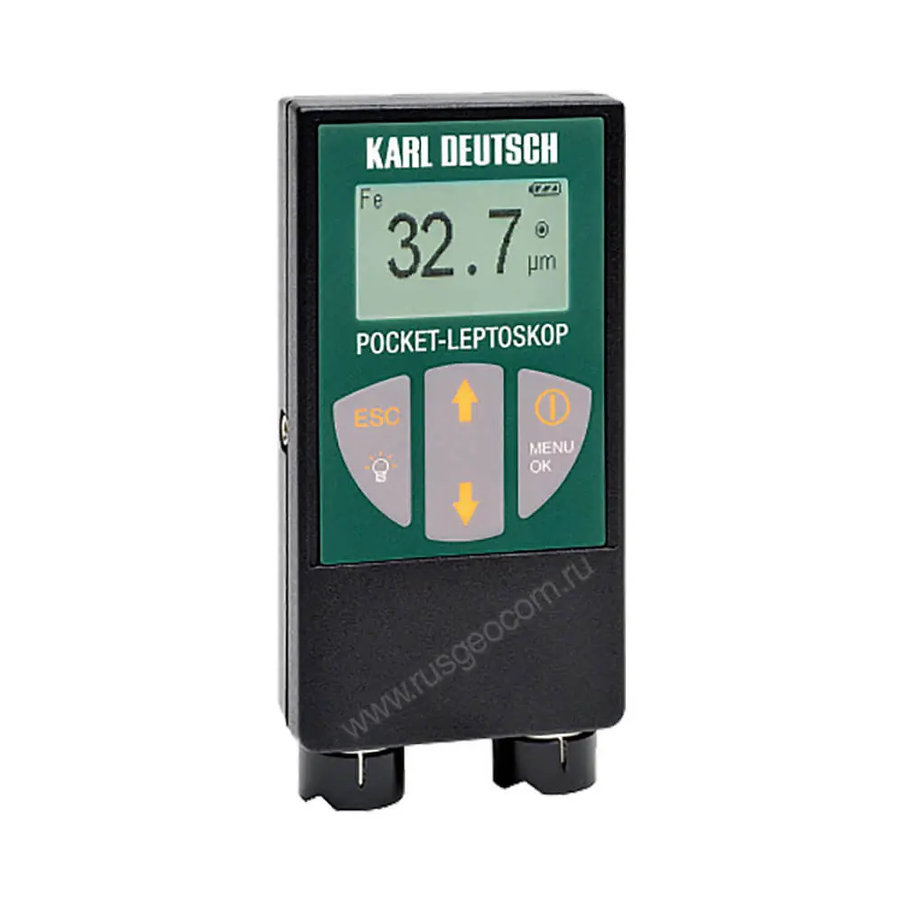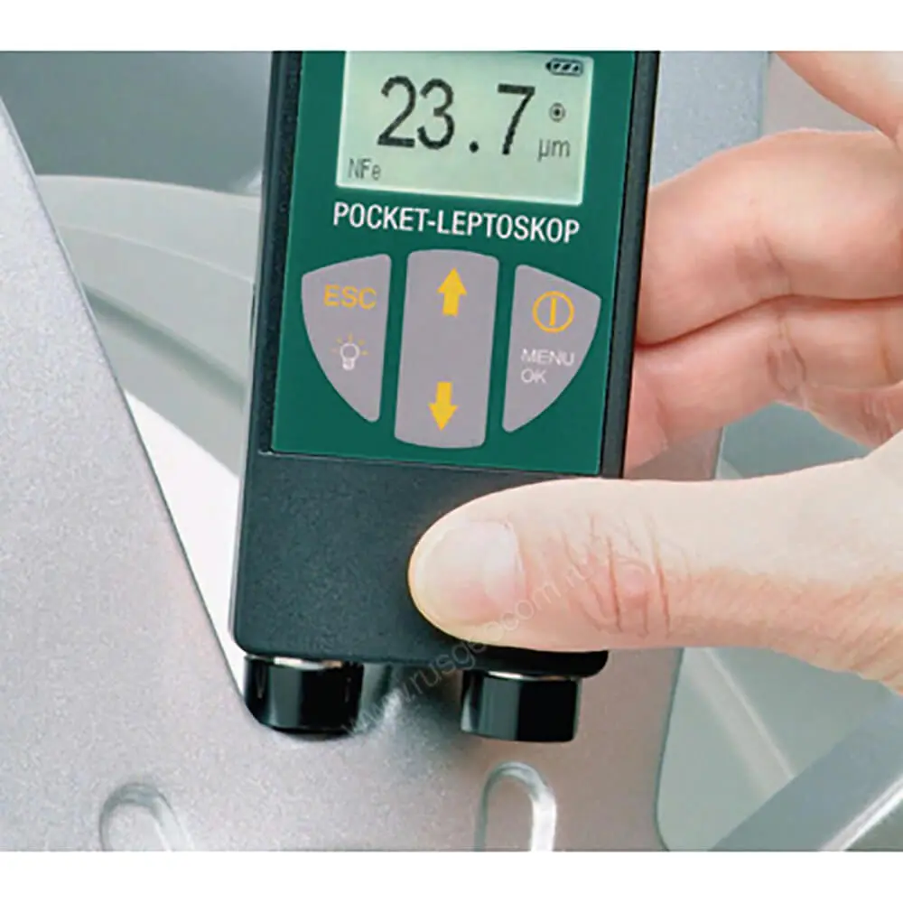 Настройка толщиномера POCKET-LEPTOMETER и вызов функций производятся через меню с помощью навигационных клавиш. Оборудование работат от сменной батареи, позволяющей выполнять измерения в течение 70 часов.