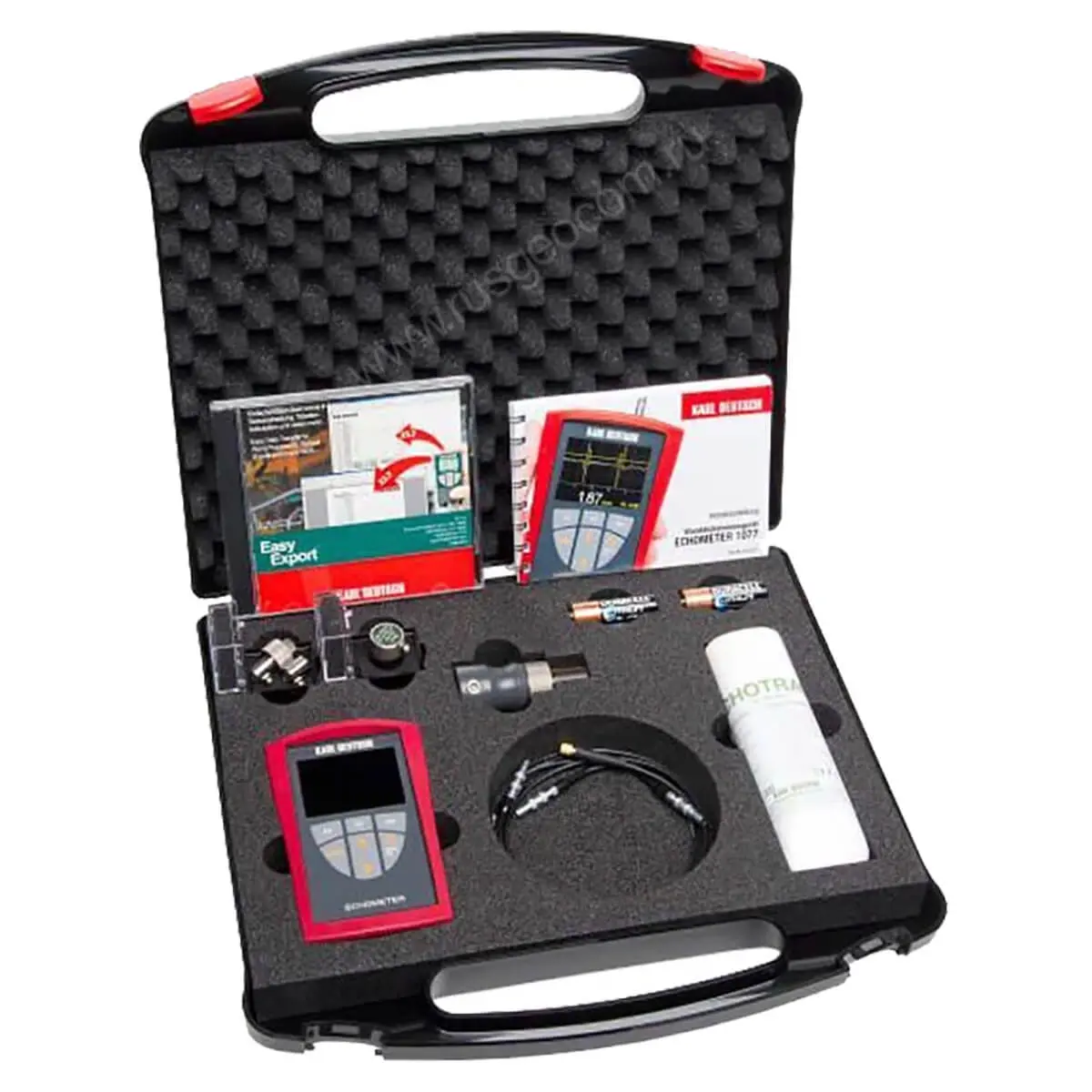 - Многофункциональность – оборудование может использоваться не только с раздельно-совмещенными, но и с совмещенными пьезоэлектрическими преобразователями производства KARL DEUTSCH, за счет чего расширены пределы измерений.