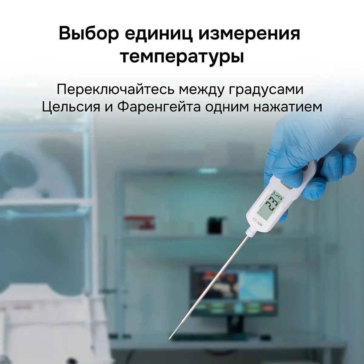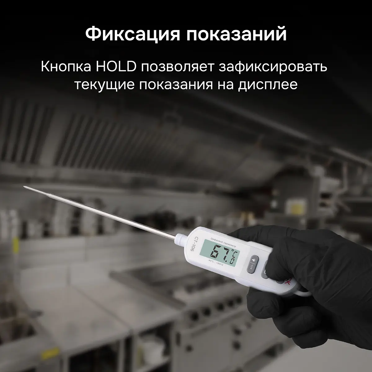 - За счет простоты и наглядности управления, что обеспечивают интуитивно понятные символы возле кнопок, не требуется специальное обучение персонала и настройка термометра перед работой.