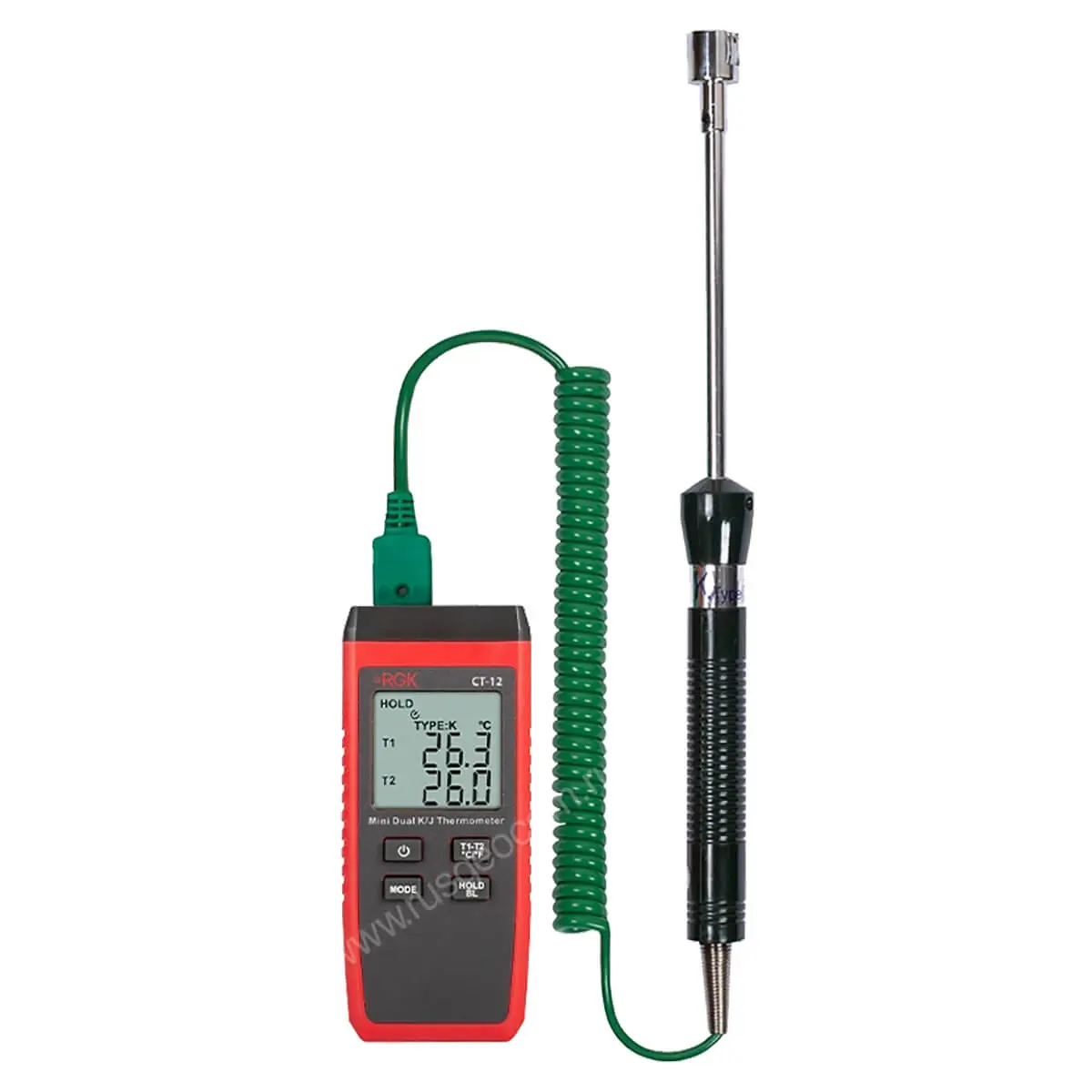Контактный термометр RGK CT-12 с поверхностным зондом TR-10S с поверкой - это надежный и точный прибор для измерения температуры в диапазоне от -40°С до +500°С с комплектной термопарой. Погрешность при этом составляет не более ± 1,5 °C. Главное преимущество этой модели - 2 гнезда для подключения выносных датчиков с функцией определения разности между каналами. Благодаря такой конфигурации можно быстро и удобно решать множество измерительных задач, связанных с диагностикой и настройкой электроники, промышленного оборудования, систем отопления и вентиляции т.п.