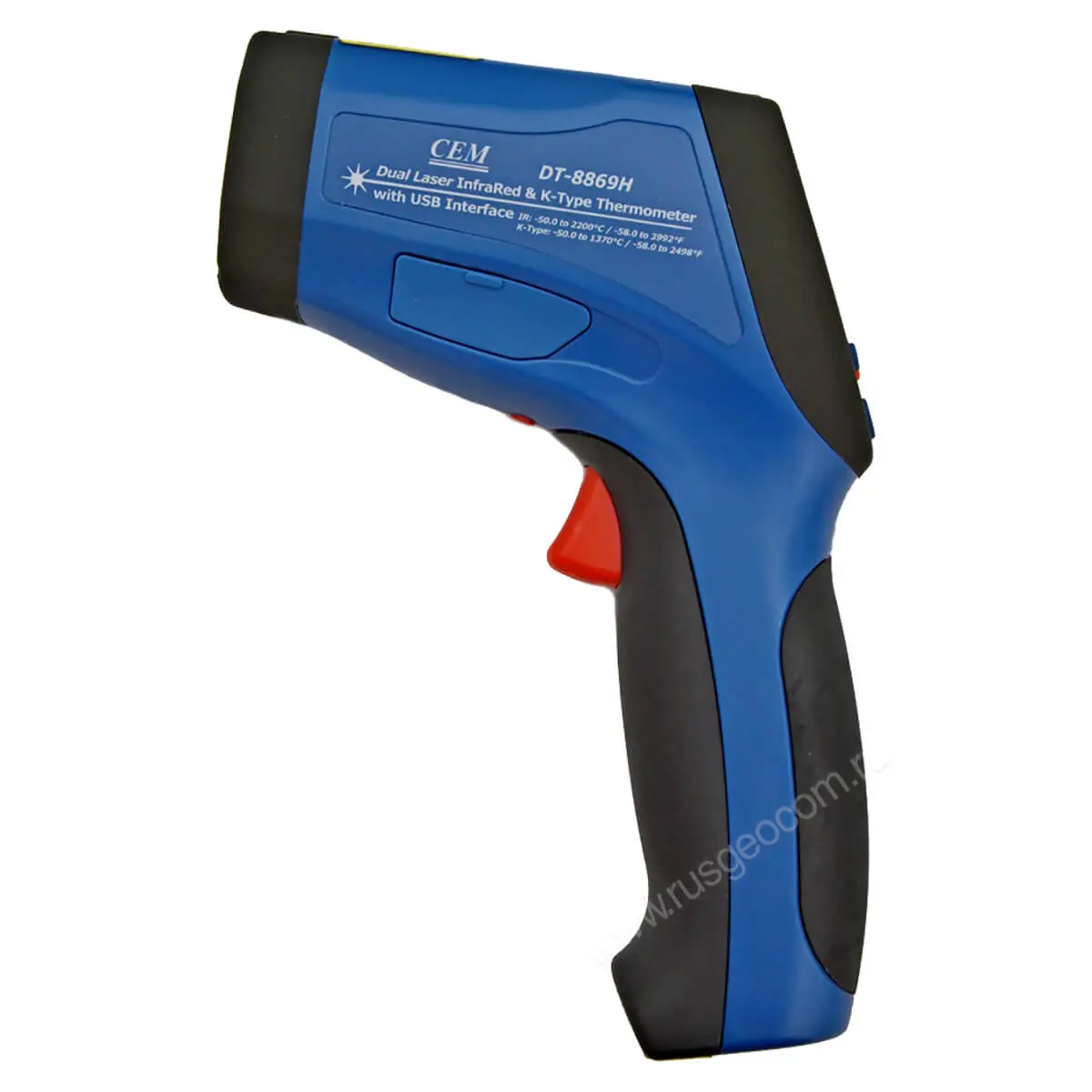Пирометр DT-8869Н оснащен двойным лазерным прицелом, упрощающим производство измерений. Прибор имеет высокое оптическое разрешение 50:1 (отношение расстояния к диаметру пятна контроля) что позволяет регистрировать температуру даже самых маленьких объектов. Имеются функции удержания измерений, определения максимальных и минимальных и средних значений, режим дифференциальных измерений режим непрерывных измерений, а также возможность ручного регулирования коэффициента излучения в диапазоне от 0,1 до 1,0. При помощи USB-порта вы сможете передавать данные на ПК, и обрабатывать их, используя специальное программное обеспечение (идет в комплекте).