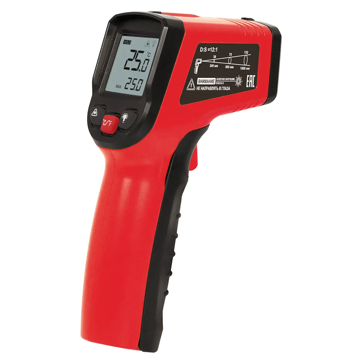 Инфракрасный термометр очень просто навести на цель благодаря яркому лазерному целеуказателю. Он помогает получить точные данные о температуре конкретной детали или отдельного участка поверхности.