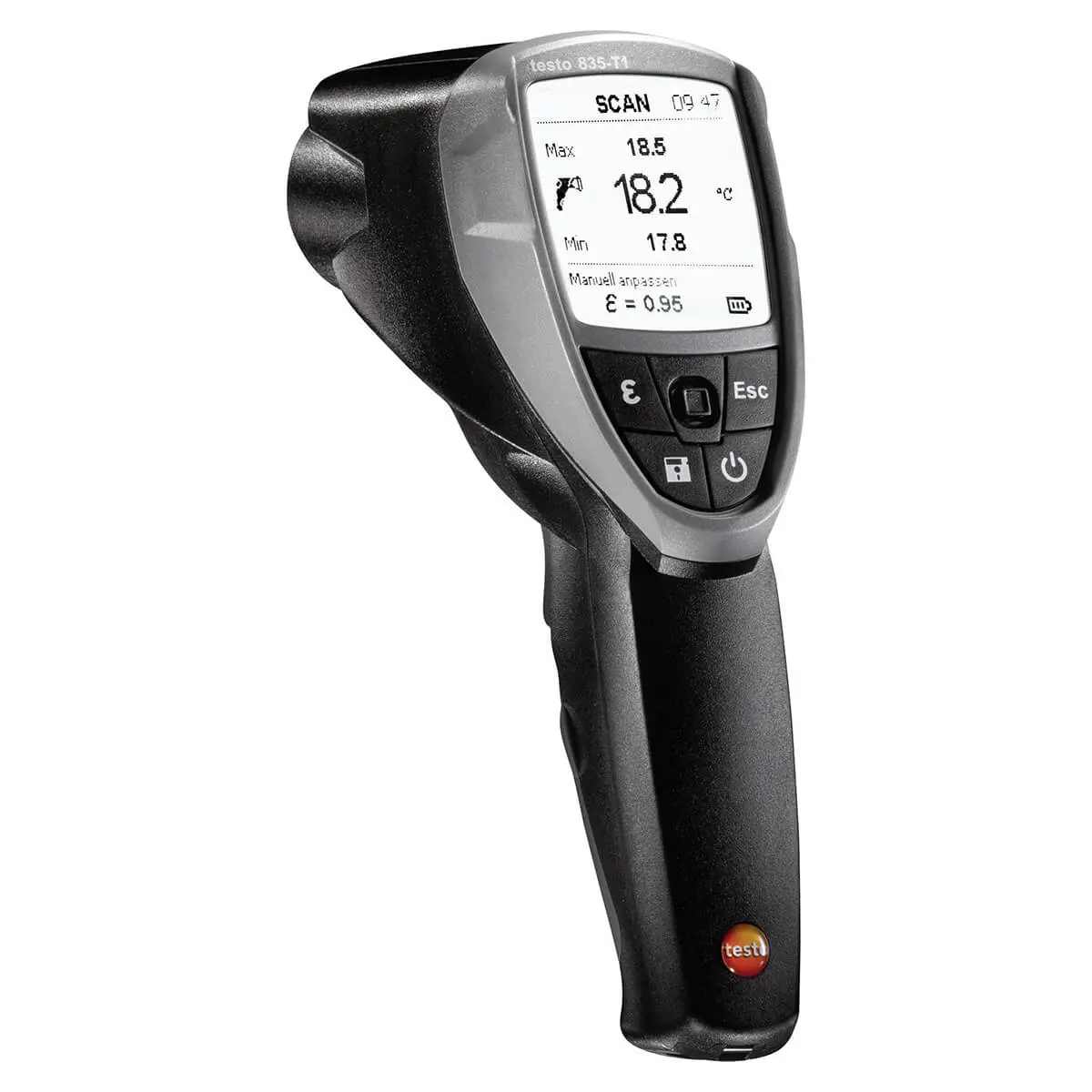 Пирометр Testo 835-T1 позволяет без труда измерить температуру любой поверхности, будь то стена, корпус двигателя, обшивка котла или поверхность расположенной на эстакаде трубы отопления. Все измерения можно провести на расстоянии, не поднимаясь на эстакаду или не подходя к горячему оборудованию вплотную.