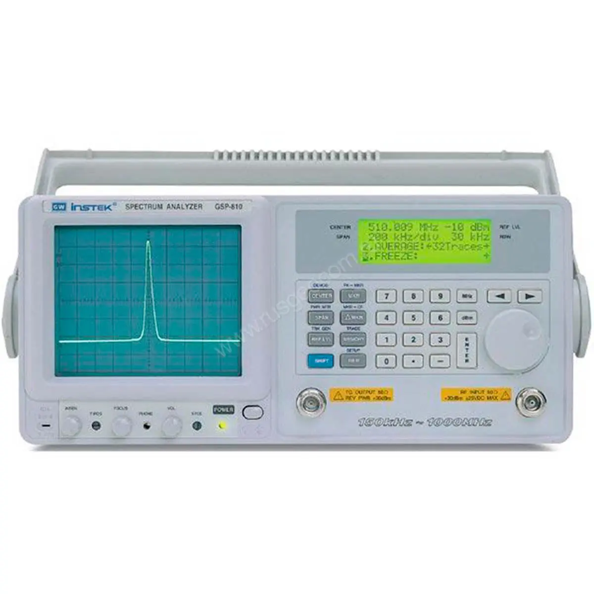 Анализатор спектра GW Instek GSP-810 используется для отслеживания и измерения электрических или электромагнитных колебаний в промежутке частот от 150 кГц до 1150 МГц с цифровой системой фазовой автоподстройки параметров.