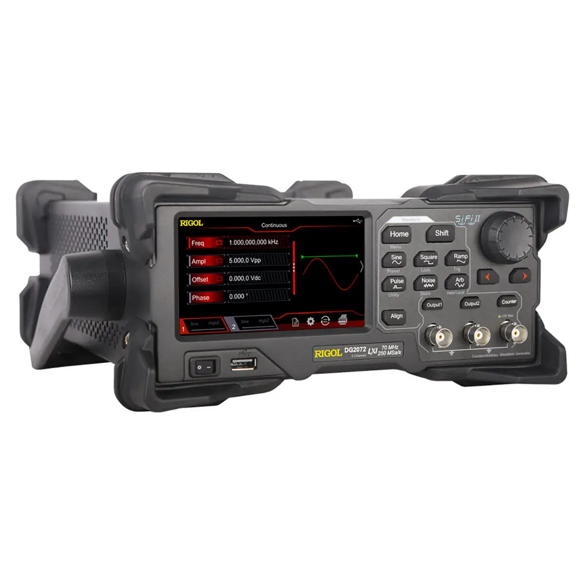 | Форма | синус, прямоугольный, пила, импульсный, шум, произвольной формы (кроме DC), PRBS, RS-232, последовательность |