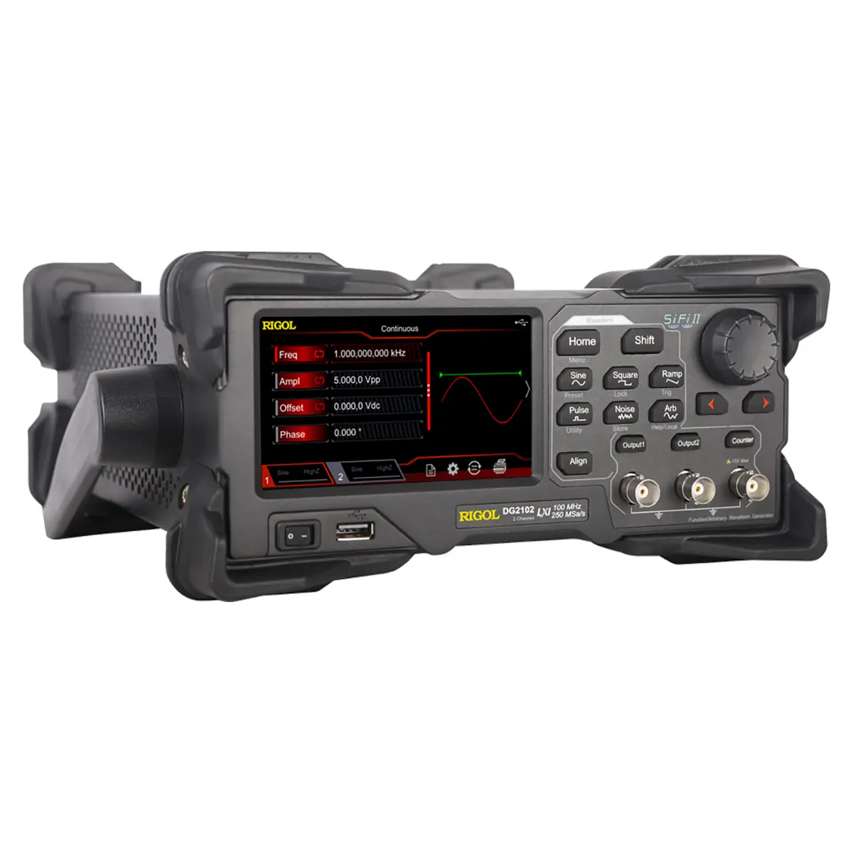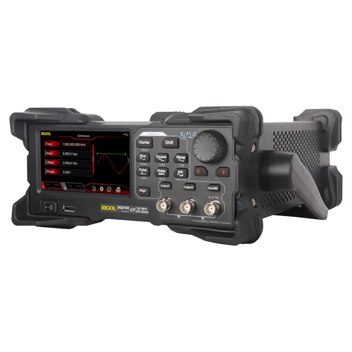 | Форма | синус, прямоугольный, пила, импульсный, шум, произвольной формы (кроме DC), PRBS, RS-232, последовательность |