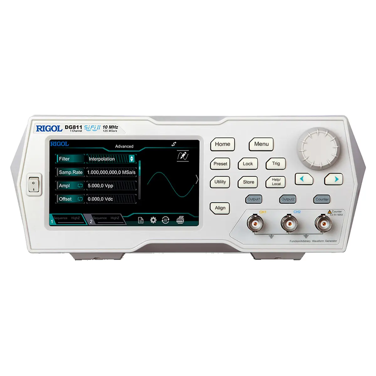 | Форма | синус, прямоугольный, пила, импульсный, шум, произвольной формы (кроме DC), PRBS, RS-232, последовательность |