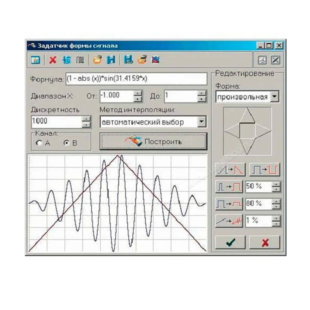 Выбор формы для обоих каналов: