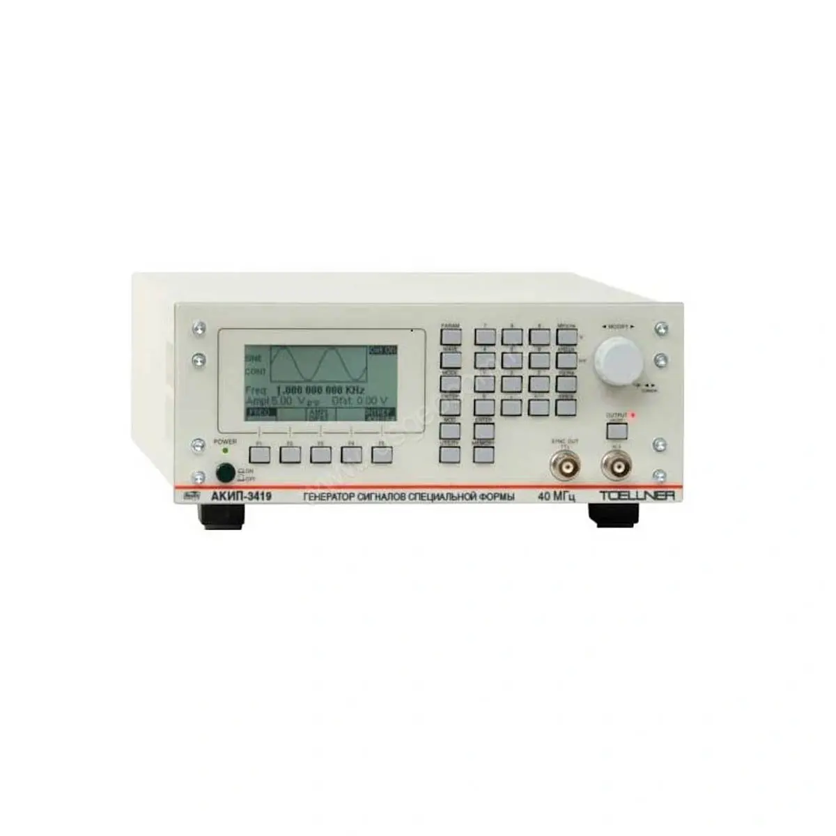 Генератор сигналов специальной формы АКИП-3419 – измерительный прибор для формирования сигналов, которые необходимы специалистам для разработки, отладки, тестирования и ремонта электронных и радиоэлектронных приборов. Устройство имеет 1 выходной аналоговый канал и 1 канал для вывода цифрового сигнала.